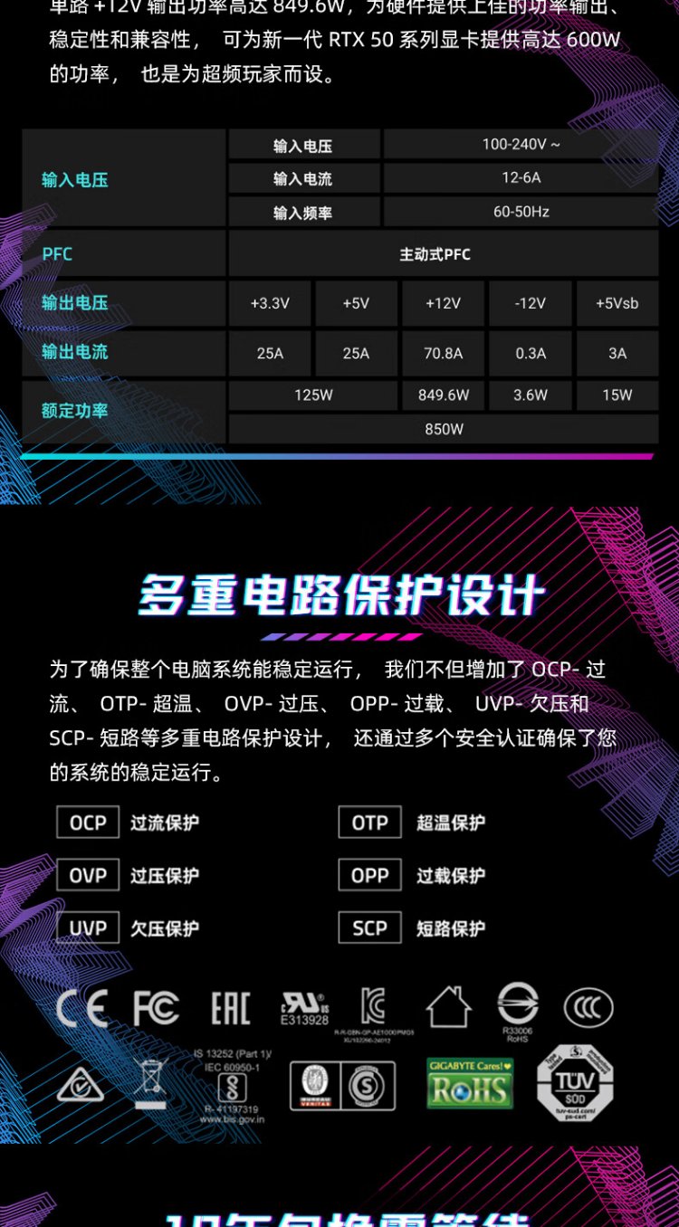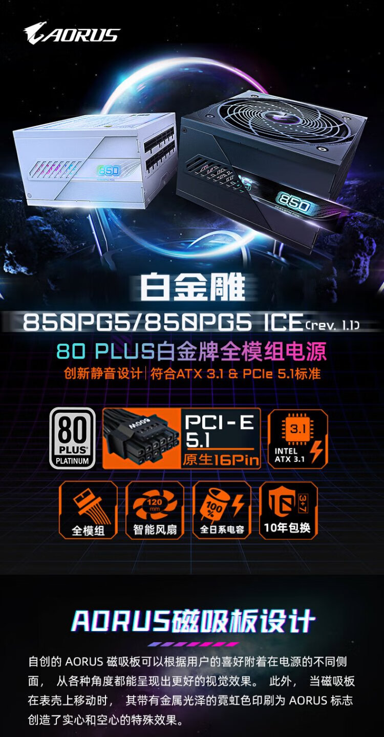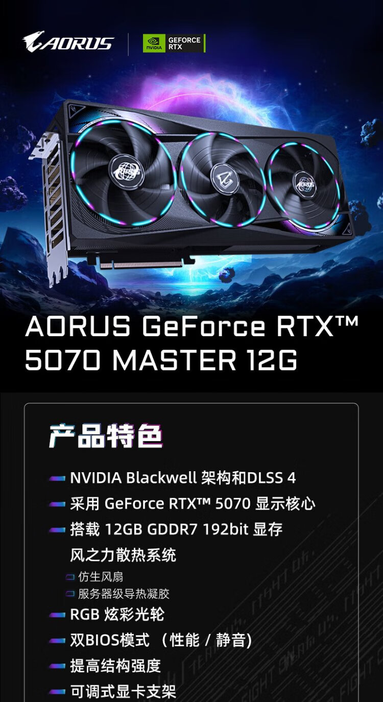 技嘉(GIGABYTE)超级雕 5070 AORUS MASTER OC 12G 显卡 + 850W白金雕电源套装