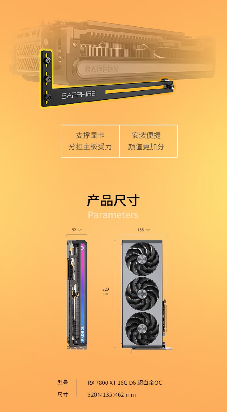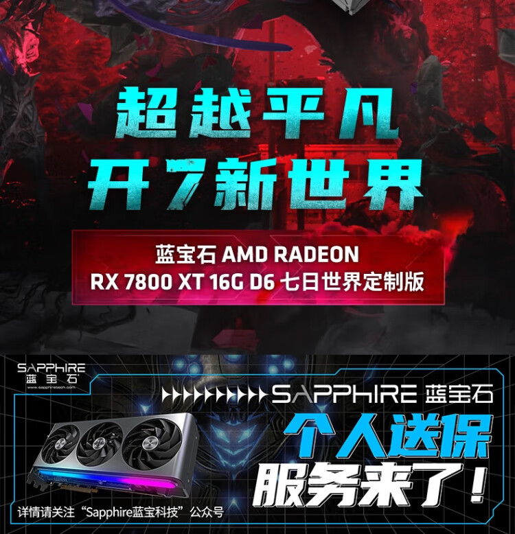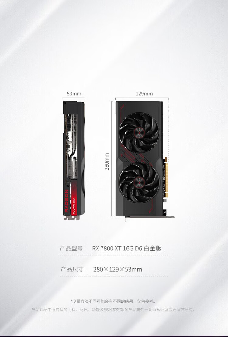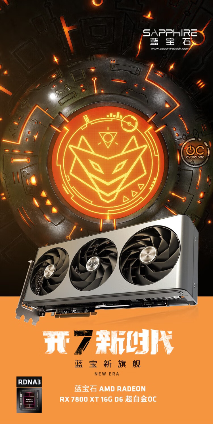 蓝宝石(Sapphire)AMD RADEON RX 7800XT/9070GRE 黑神话悟空台式机独立游戏电竞高性能显卡 RX 7800 XT 16G 白金版
