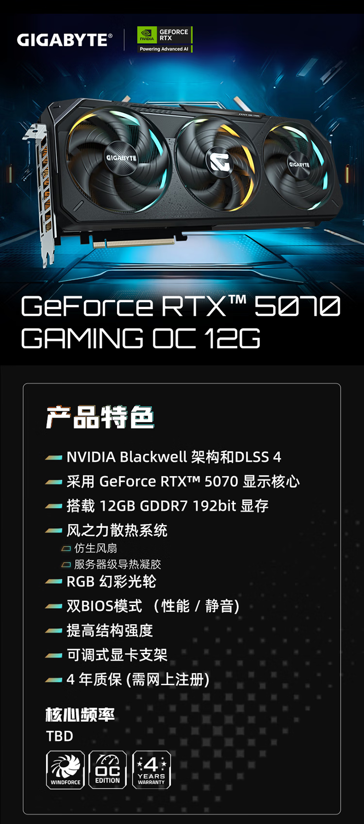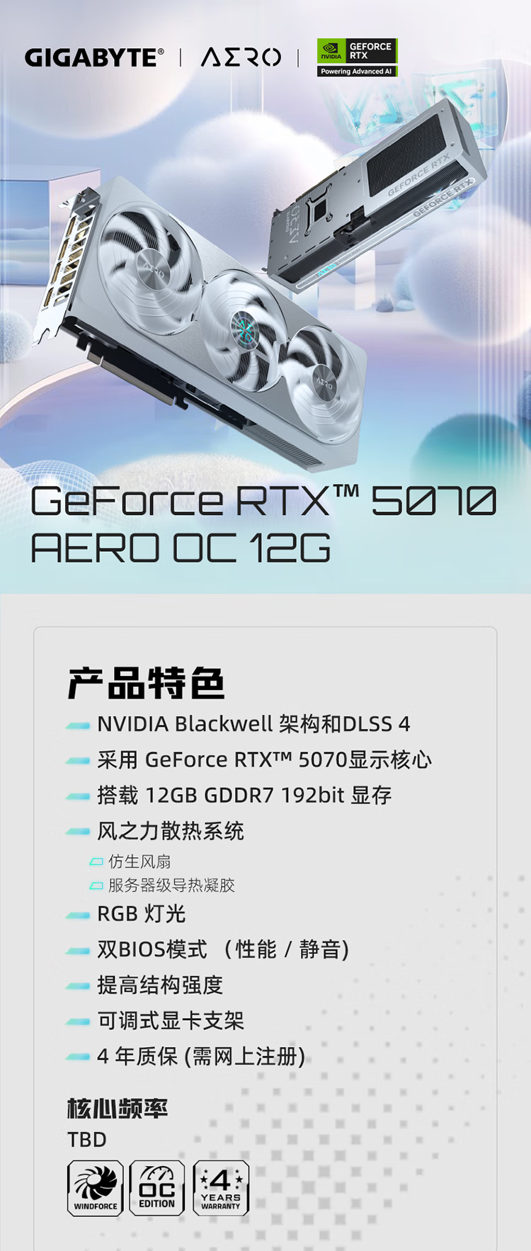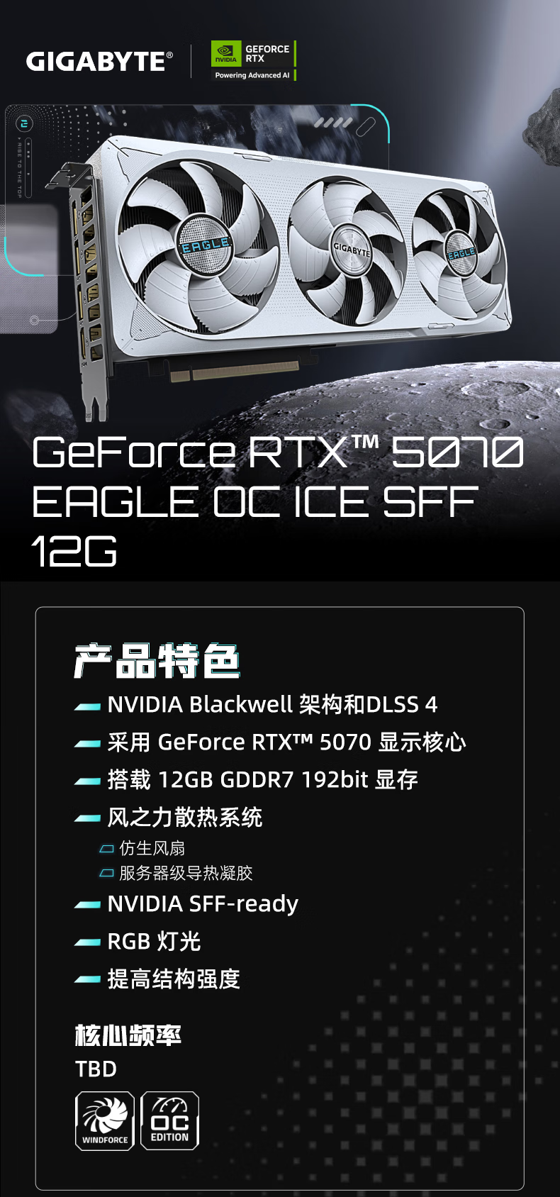 Carte graphique GIGABYTE RTX 5070 12G Magic Eagle/Snow Eagle/Super Eagle/Wind Demon/Falcon 2K/4K ordinateur de bureau jeu en direct peinture intelligente Ai rendu vidéo SD sous-phare RTX5070 Snow Eagle OC 12G