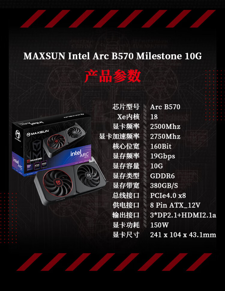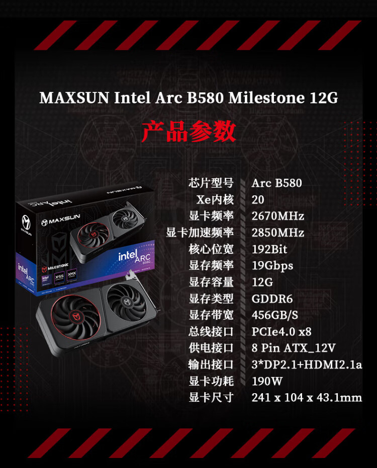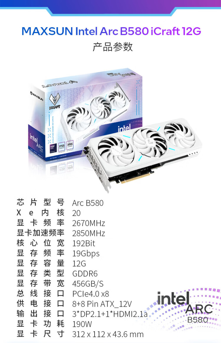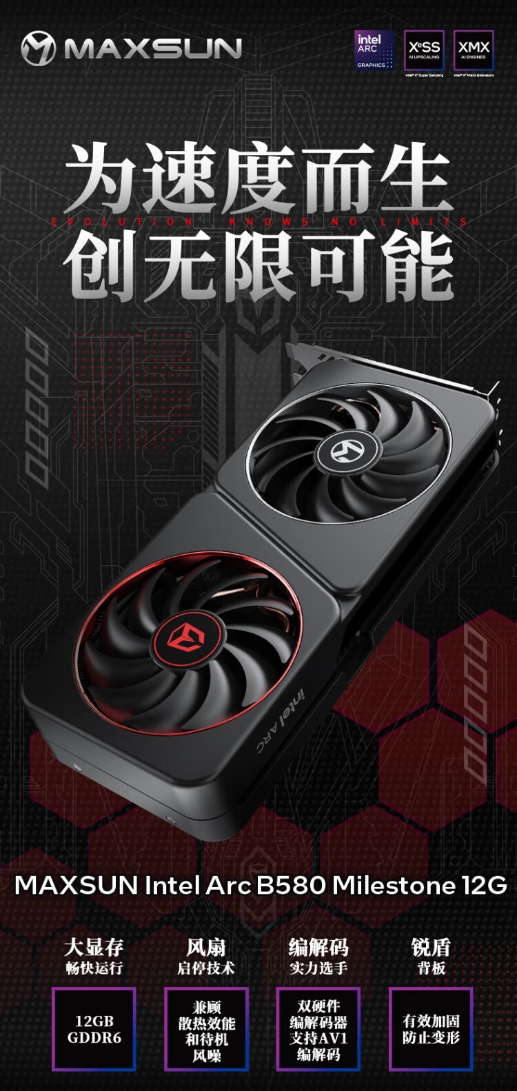 MAXSUN Desktop-Gaming-E-Sport-Grafikkarte Intel Arc B580/B570 iCraft/Milestone DDR6 unabhängige Grafikkarte Milestone Arc B580 12G 12G