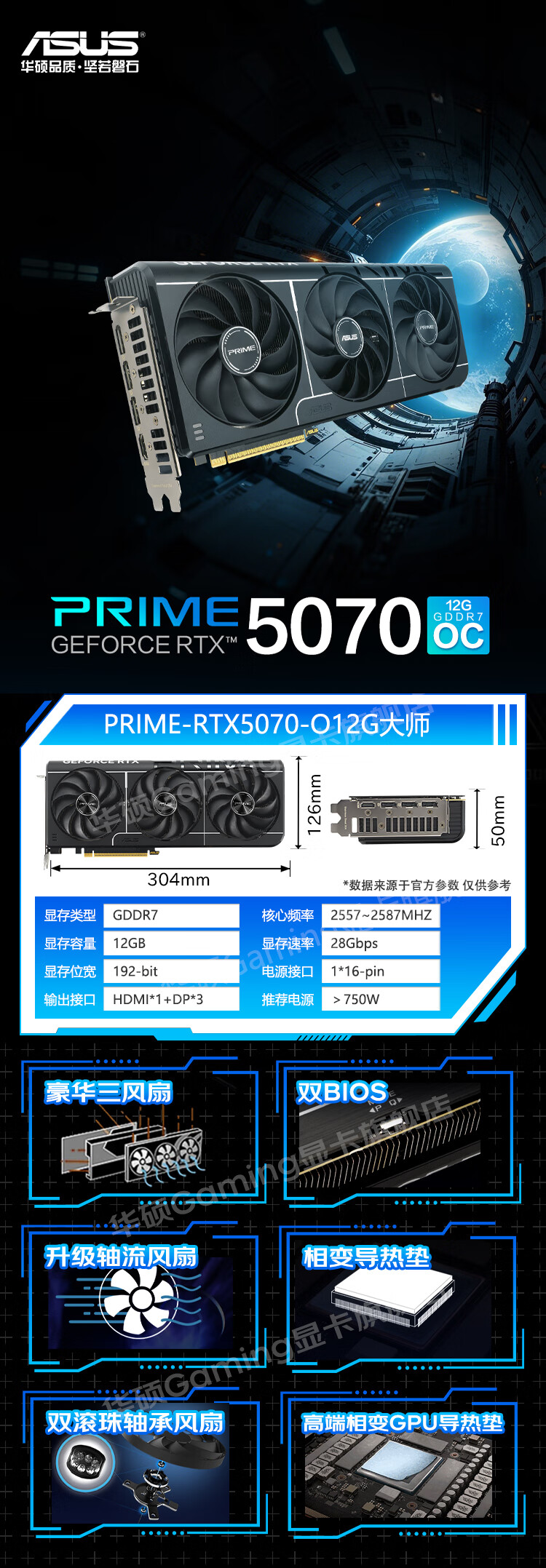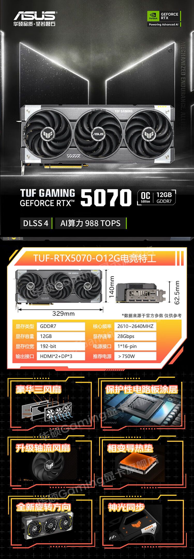 ASUS RTX 5070 Black Myth Wukong AI Computing Power Night God/TUF/Megalodon/Tianxuan/Snow Leopard Live-Rendering und Zeichnen E-Sports-Spiel Computerunabhängige Grafikkarte PRIME-RTX5070-O12G Master Neu und original einsatzbereit