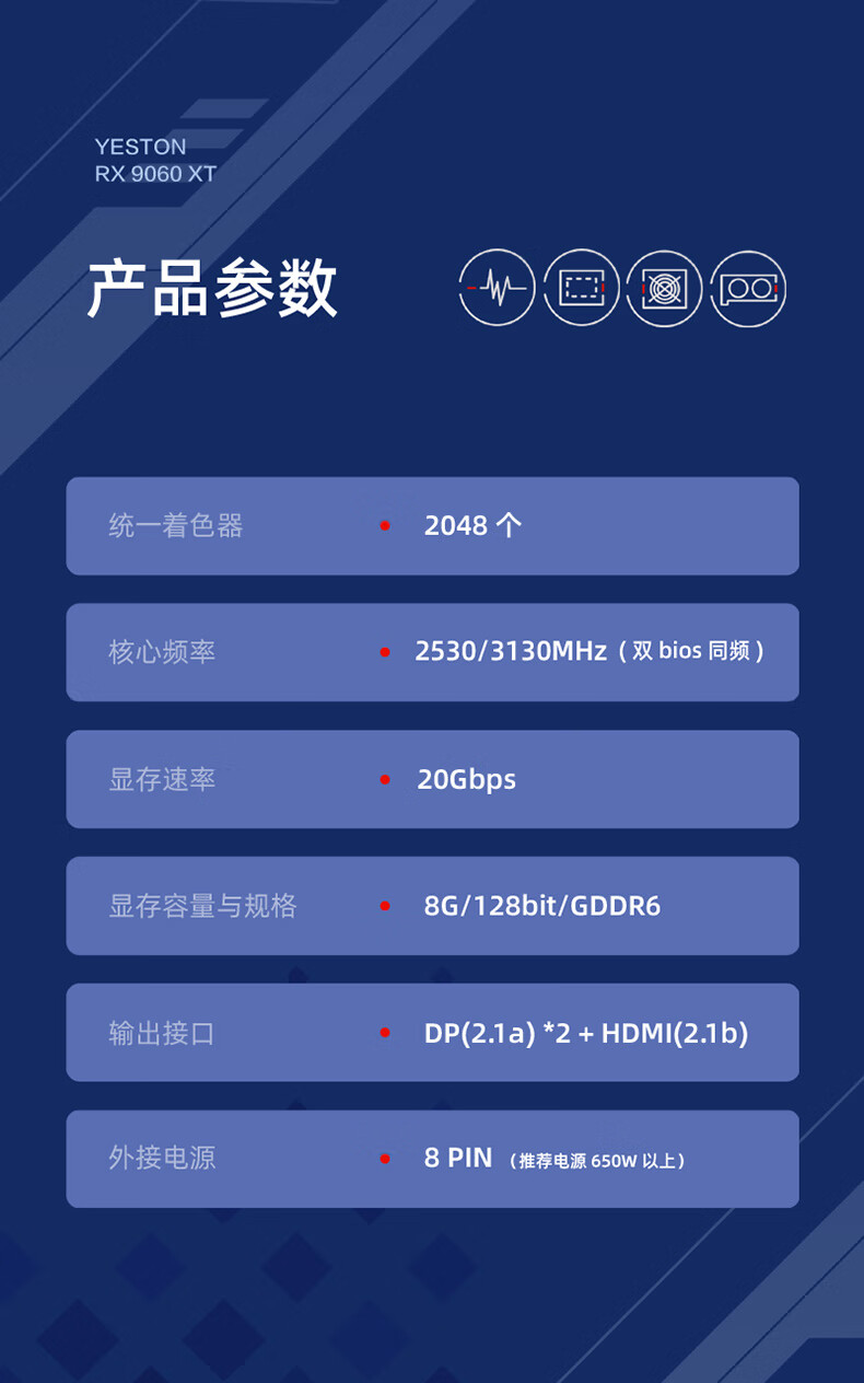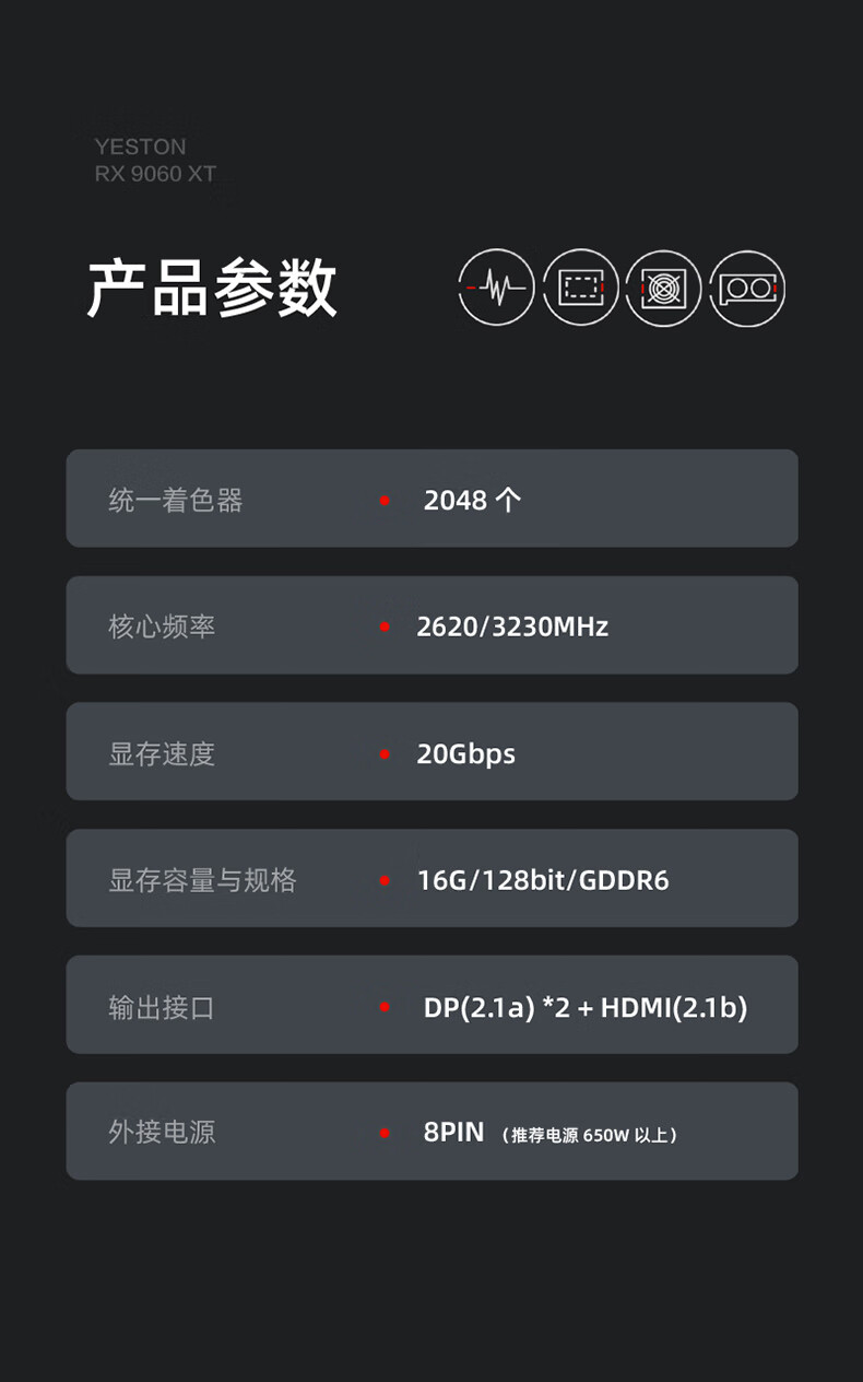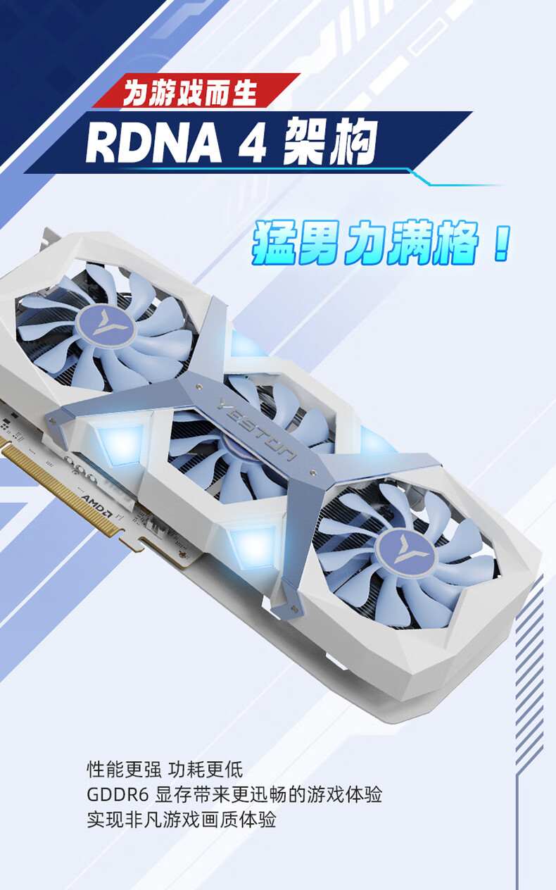 Yeston AMD RADEON RX 9060 XT E-sports live video editing AI smart game graphics card RX 9060 XT 8G game master