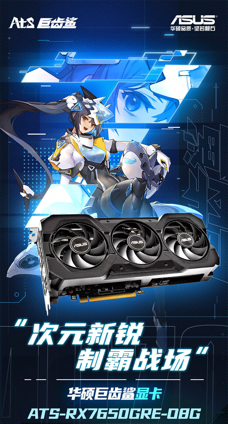 Carte graphique ASUS ATS RX7650GRE OC 8G Megalodon assemblage de bureau e-sports jeu d'ordinateur carte graphique indépendante ATS RX7650GRE O8G Megalodon