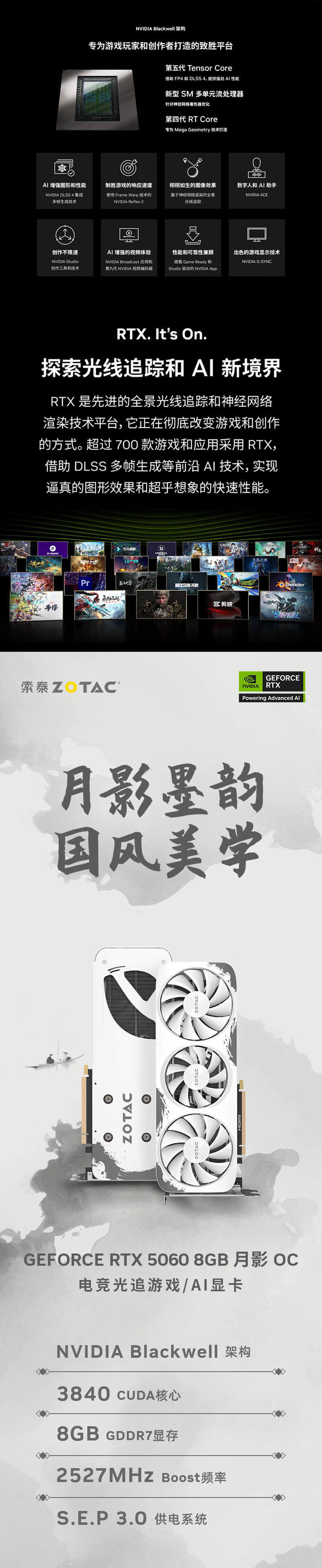 ZOTAC nouveau Original GEFORCE RTX 5060 8GB OC 5060 série HB Moon Shadow/nuit étoilée/Star bureau carte graphique indépendante Delta Watile AI rendu Super Score ZOTAC RTX 5060 8GB Moon Shadow OC