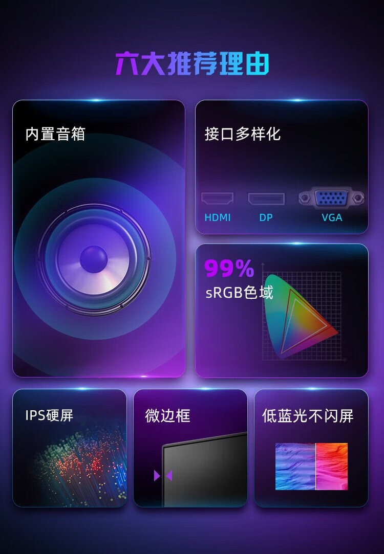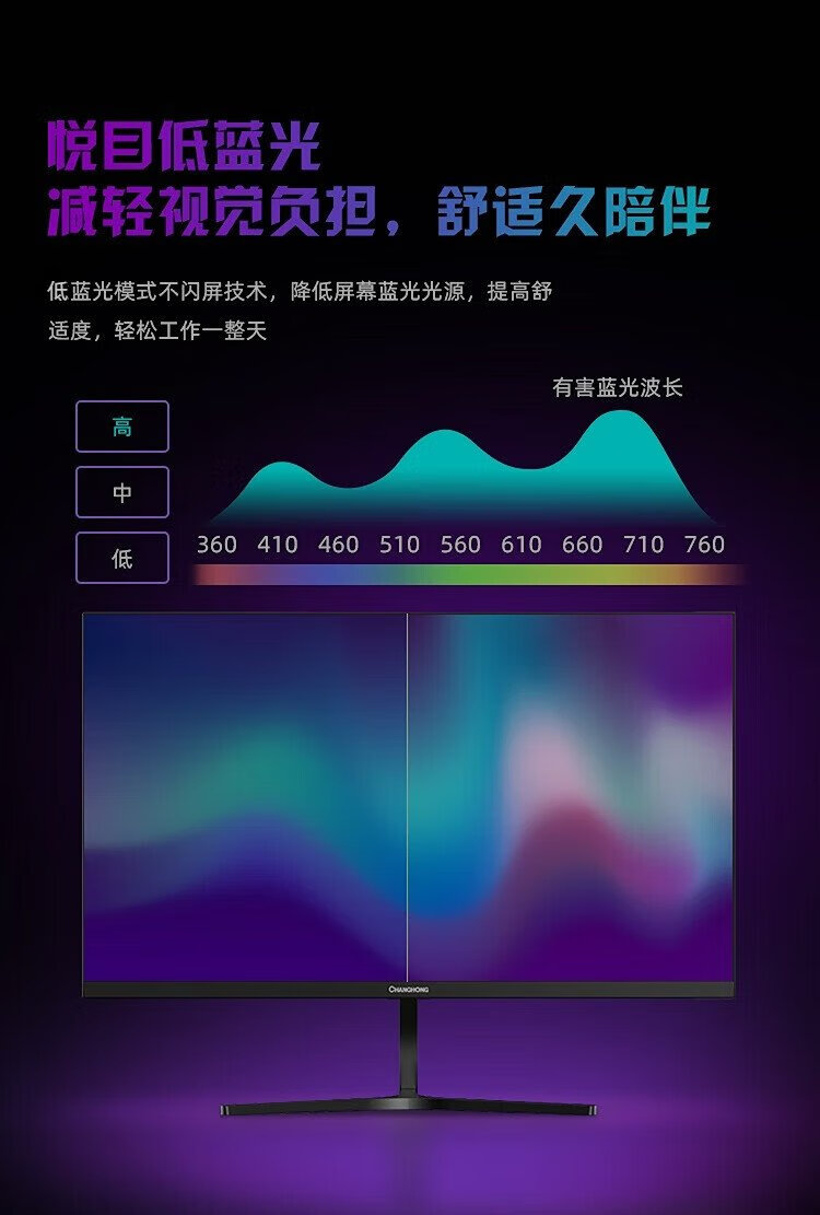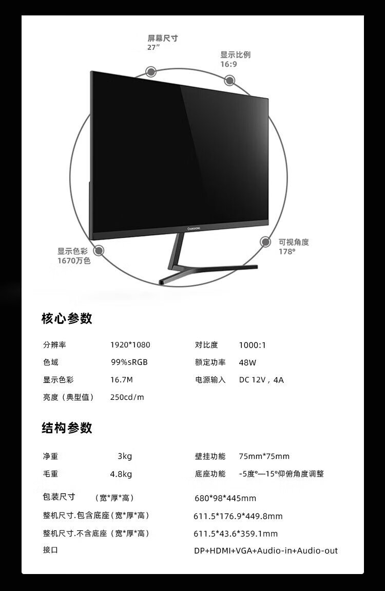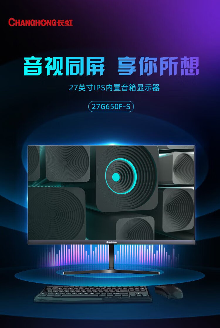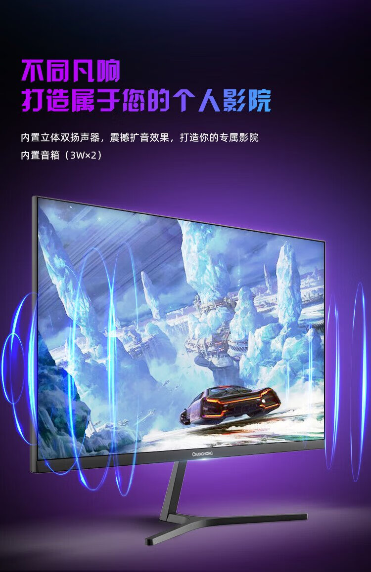 长虹 27英 内置音箱显示器 IPS硬屏 75Hz DP+HDMI+VGA接口 低蓝光爱眼 电脑显示屏 27G650F-S
