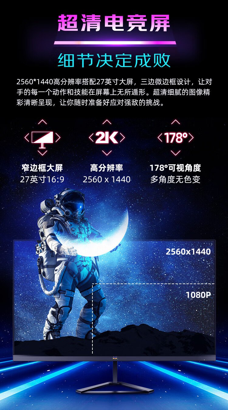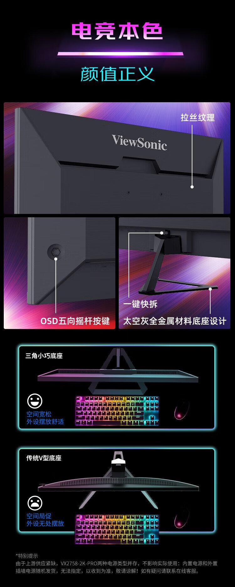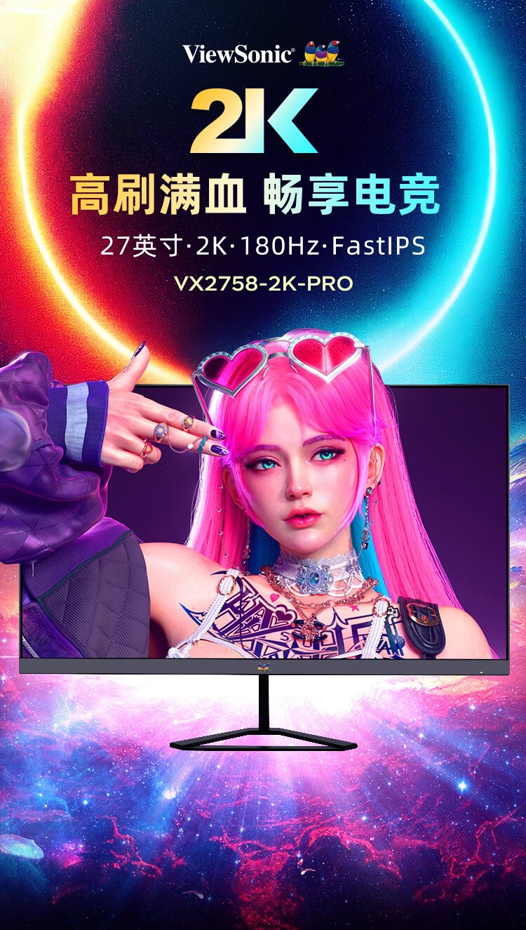 优派27英寸 2K高清 原生180Hz超频185Hz FastIPS 电竞显示器 1ms硬件低蓝光满血小金刚显示屏VX2758-2K