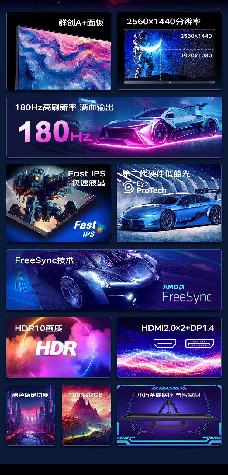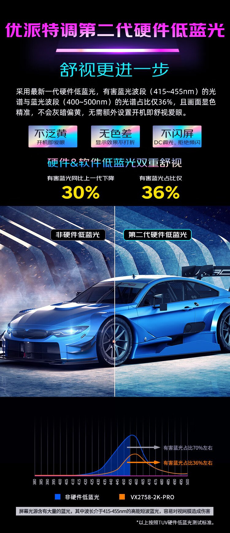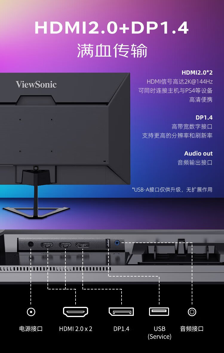 优派27英寸 2K高清 原生180Hz超频185Hz FastIPS 电竞显示器 1ms硬件低蓝光满血小金刚显示屏VX2758-2K