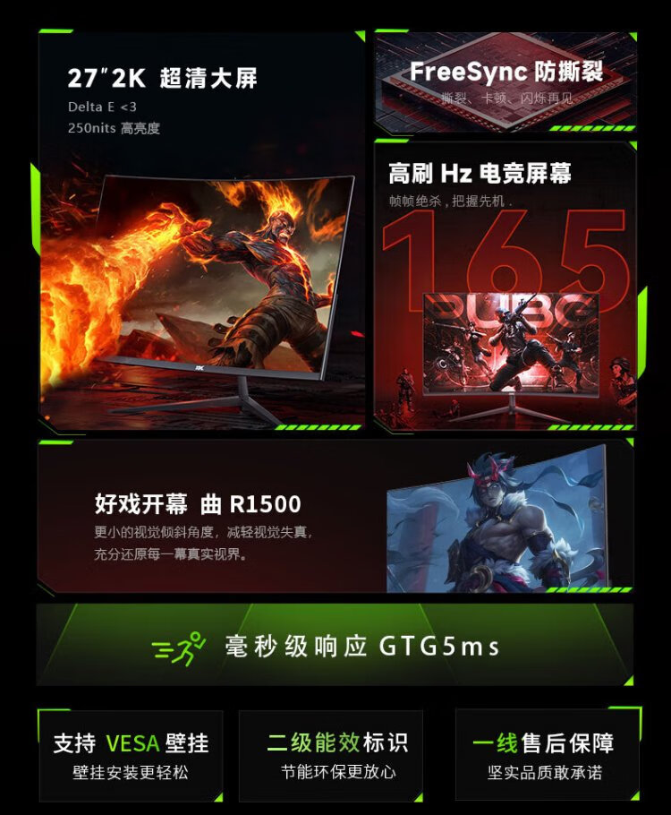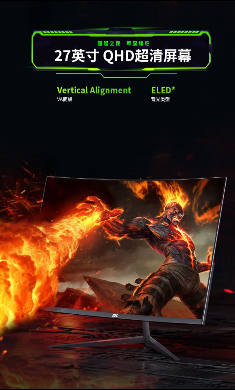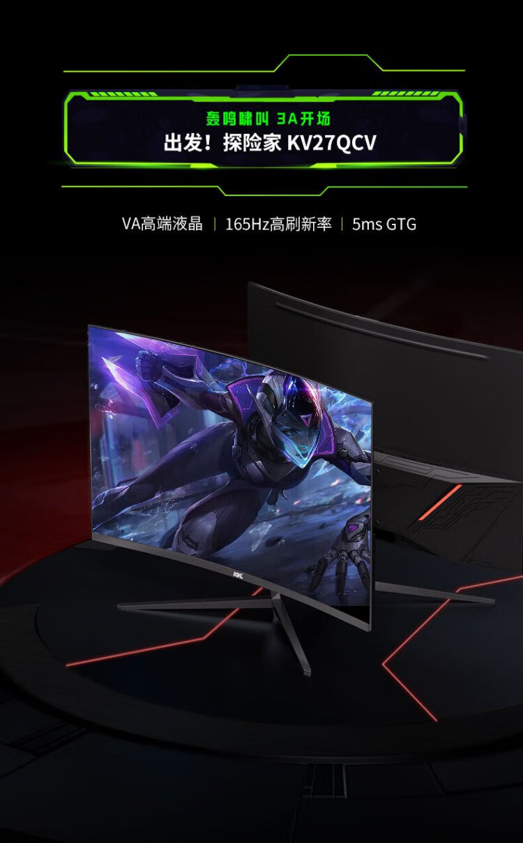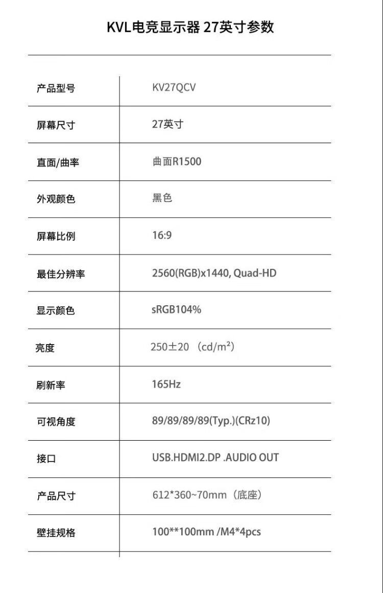 KVL computer monitor 27-inch 2k 165hz professional e-sports display R1500 curved notebook external screen FreeSync national subsidy KV27QCV