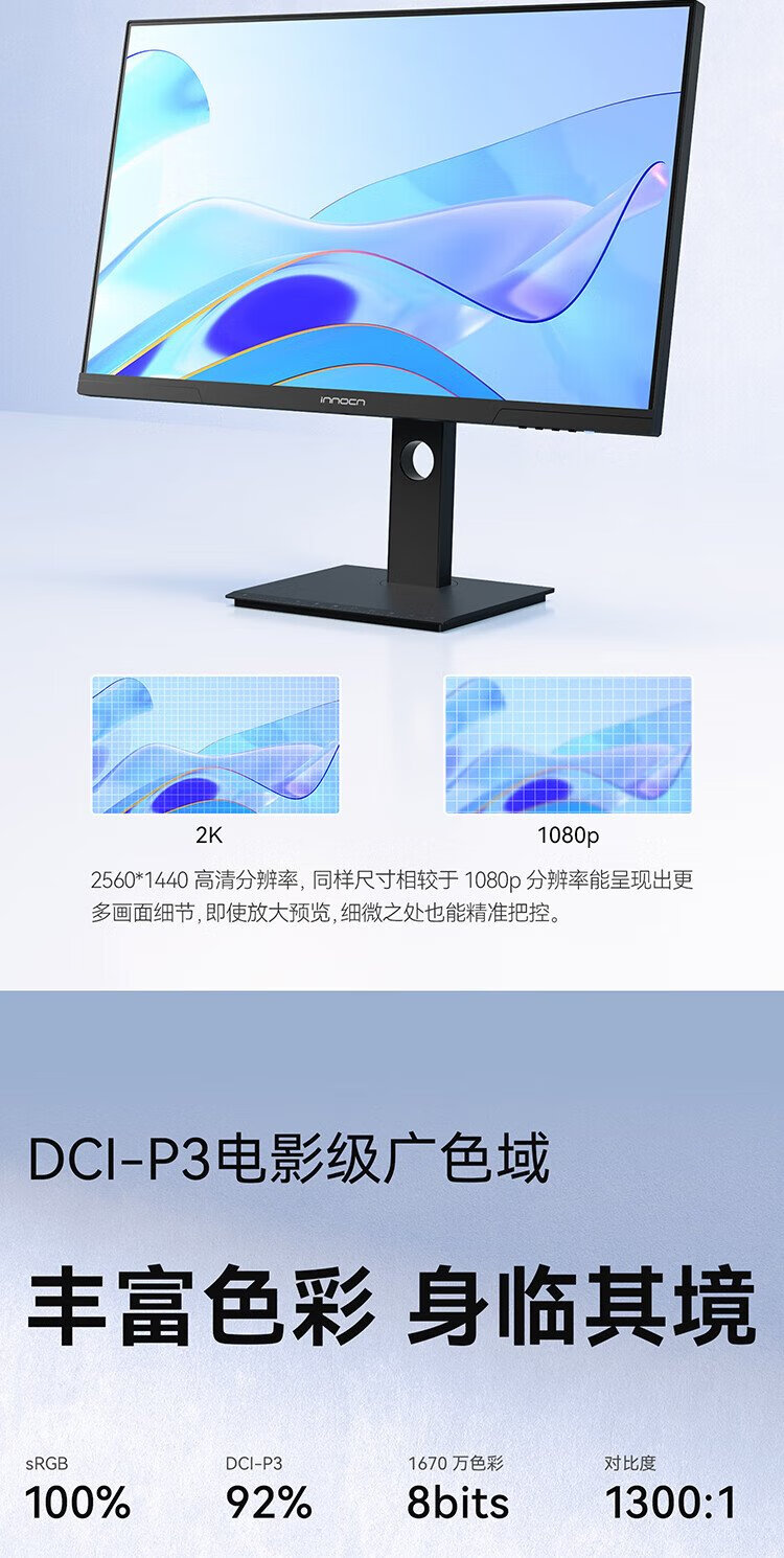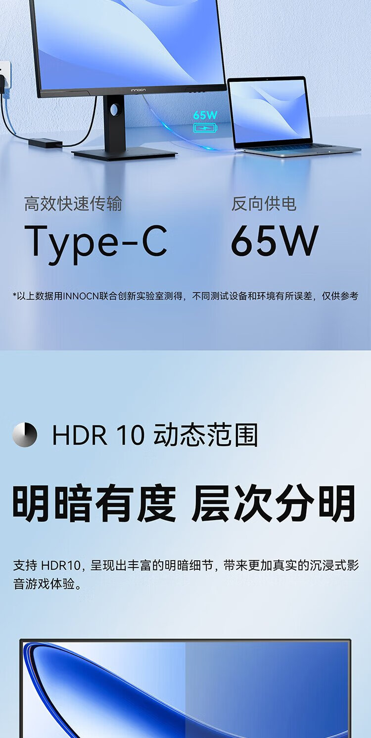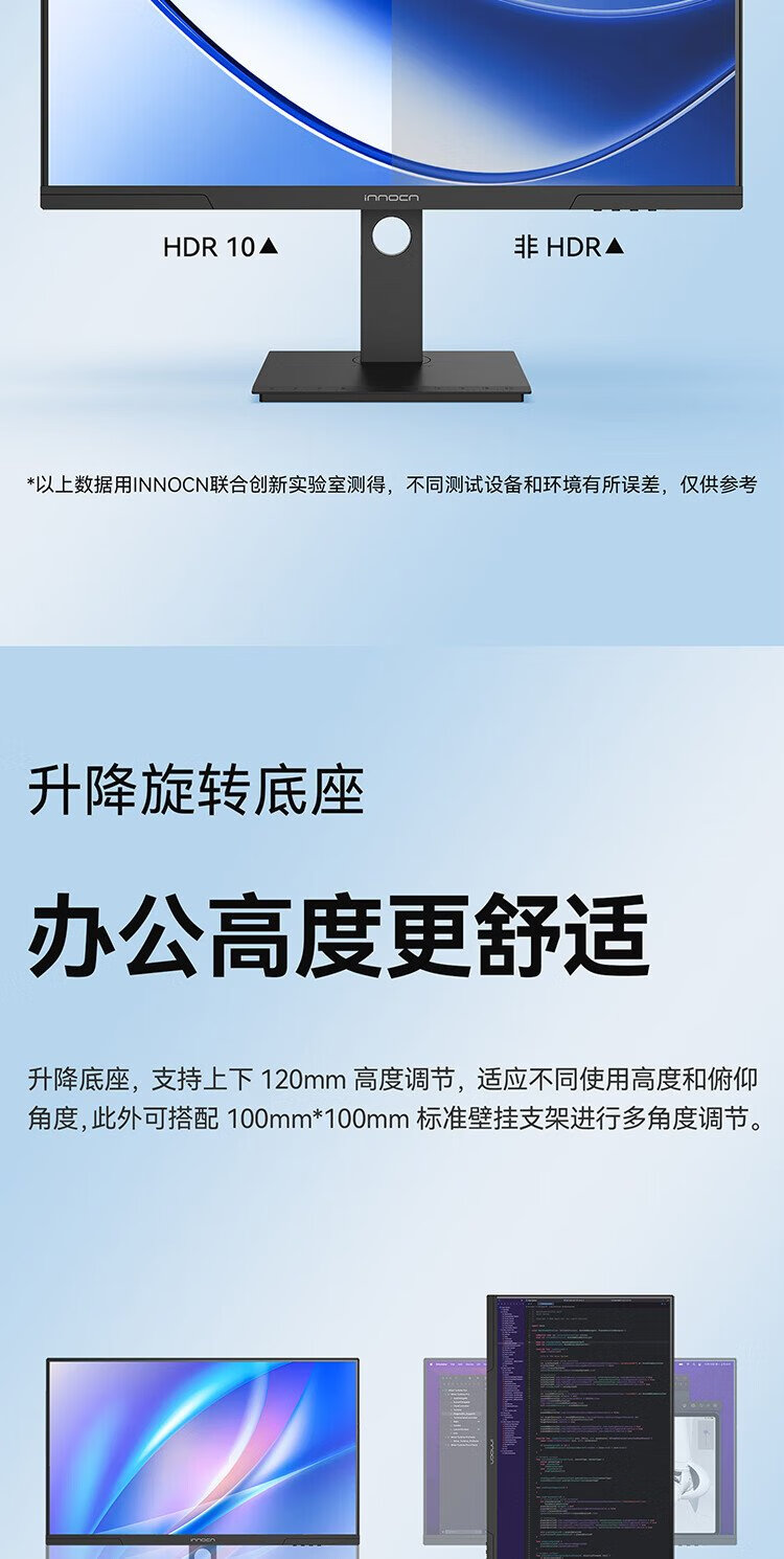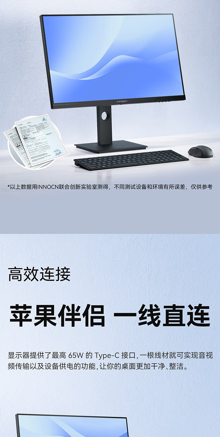 联合创新27英寸 2K高清100Hz IPS广色域Type-C65W旋转升降 硬件低蓝光护眼 电脑办公显示器27D1Q