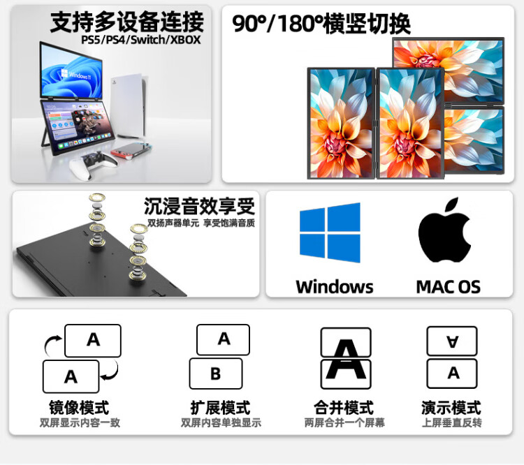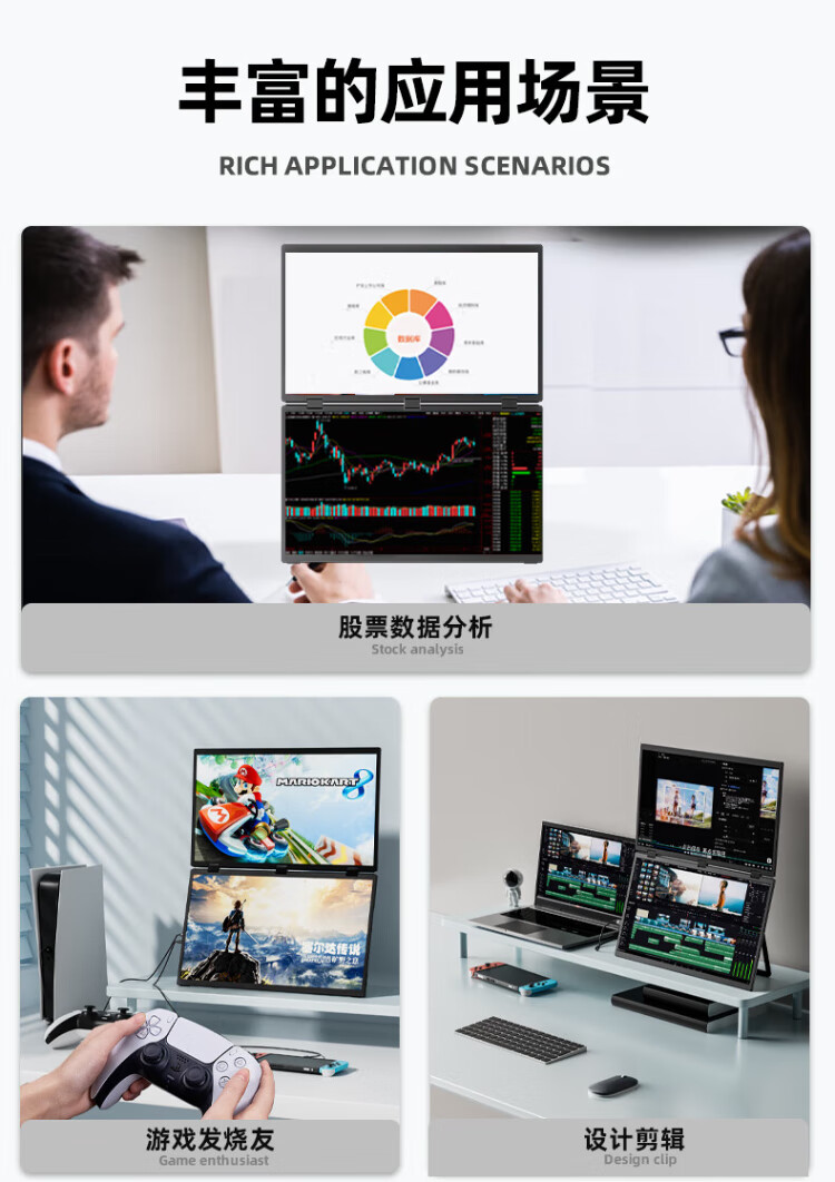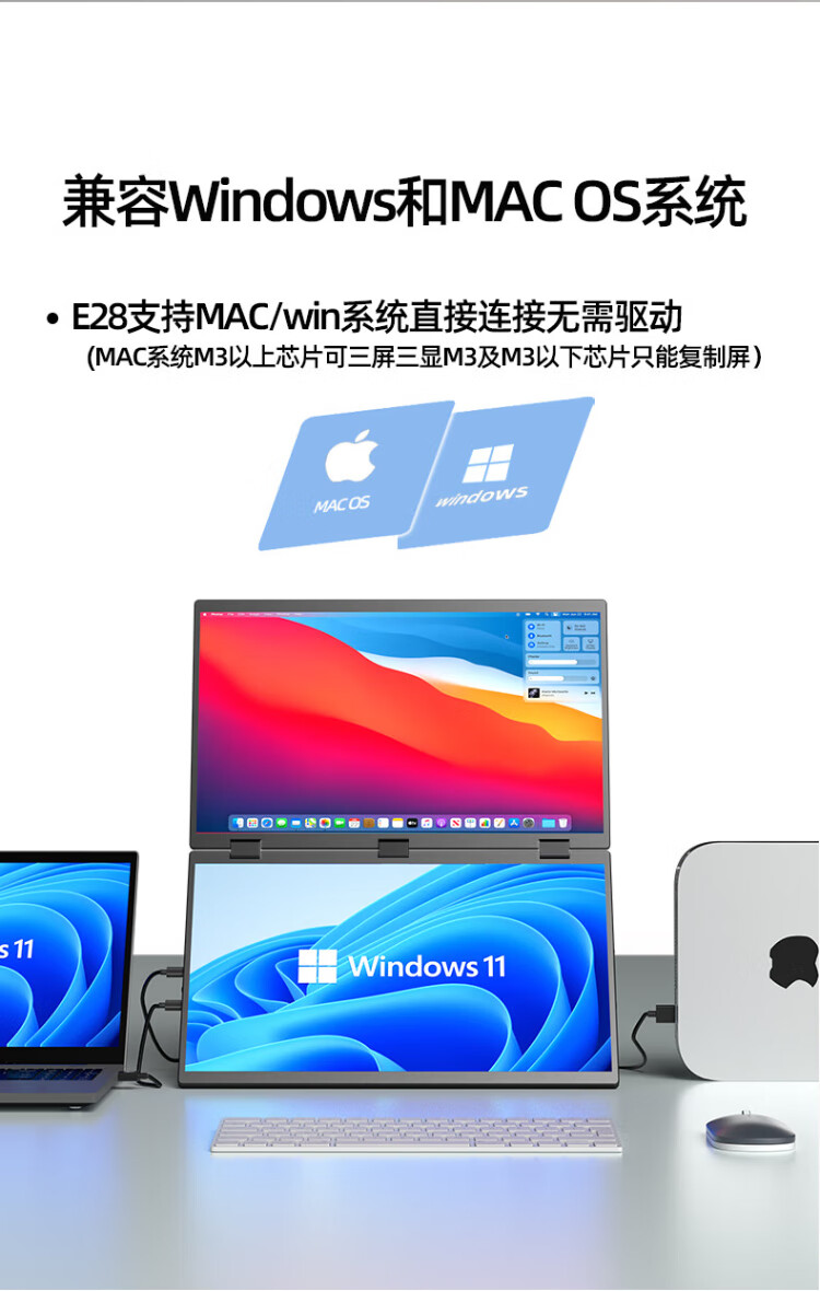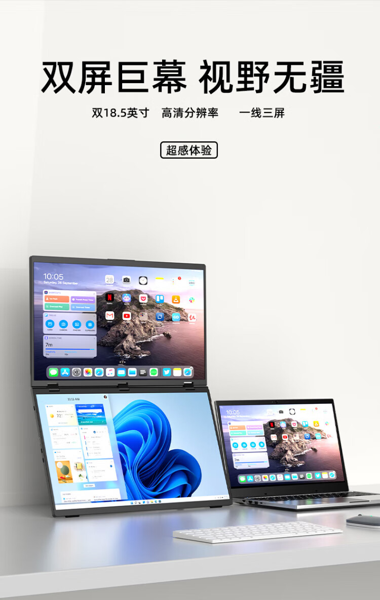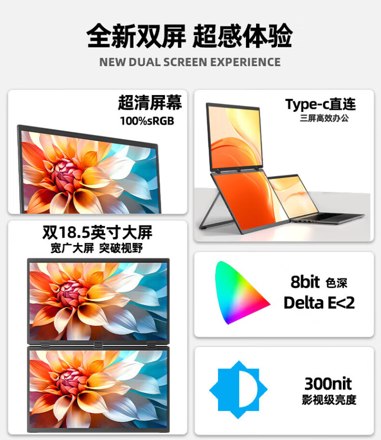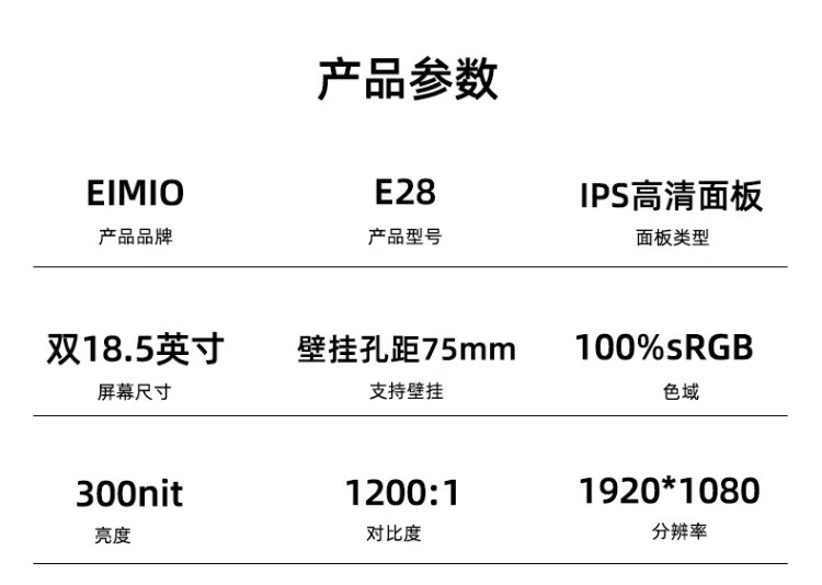 Eimio portable display dual-screen display 100Hz high-brush display 18.5-inch laptop secondary screen extended three-screen office stock trading e-sports game large screen E28