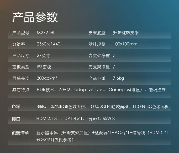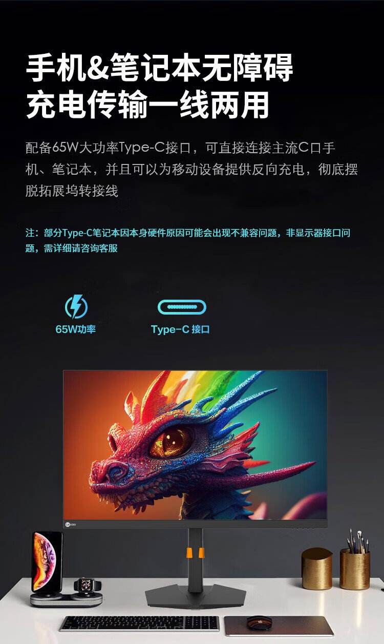 Lecoo Lecoo 27-inch 2K 100HZ HDR technology Type-C65W reverse charging full-function lifting rotating stand office monitor M2721HL