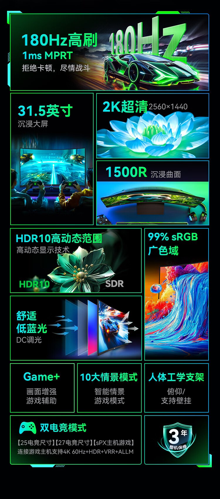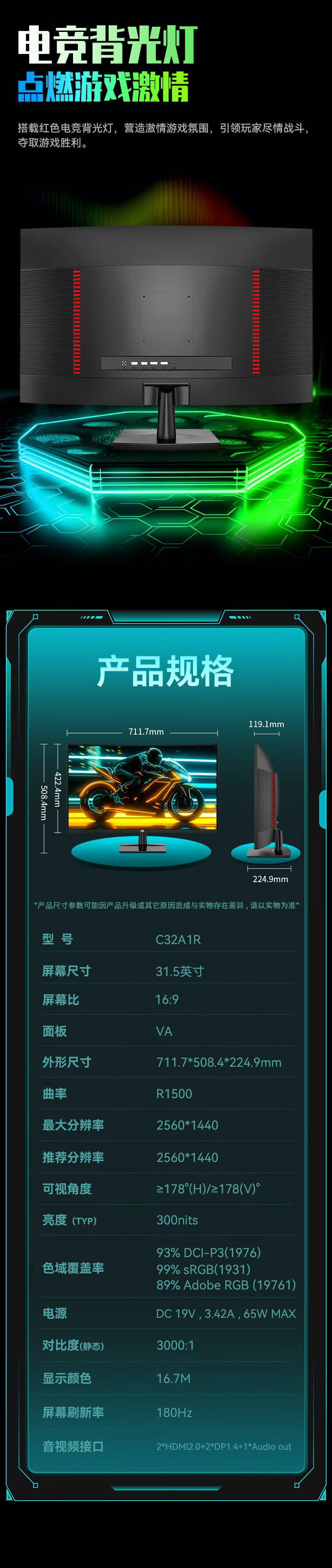 Titan Legion 31.5-inch 2K 180Hz ergonomic stand HDR high dynamic display with gaming backlight 1500R curved gaming monitor C32A1R