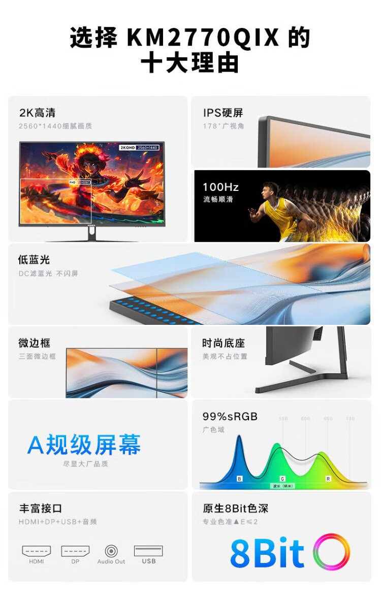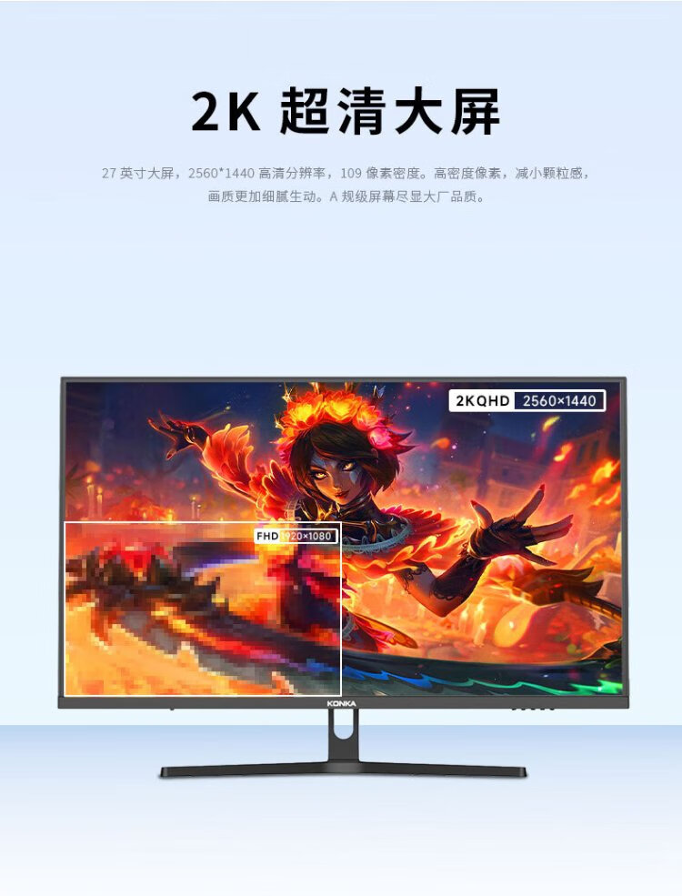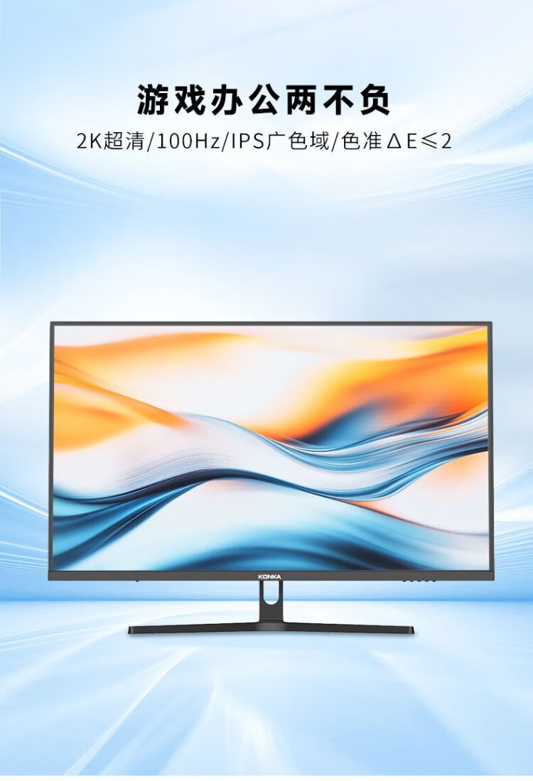 KONKA 27-Zoll-2K-100-Hz-Mikrorahmen-Display mit geringem Blaulichtanteil, breiter Farbskala, hohe Farbgenauigkeit, hochauflösendes Büro-Gaming-Computerdisplay KM2770QIX