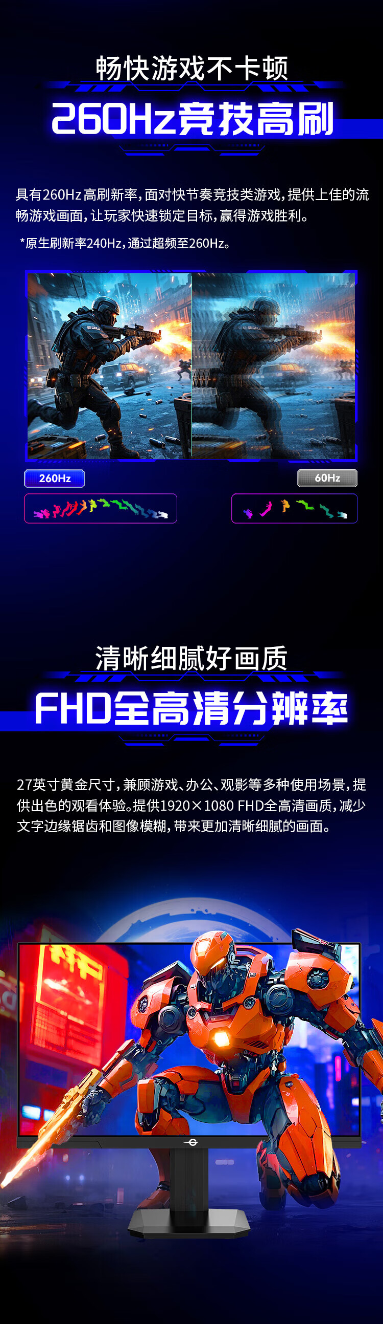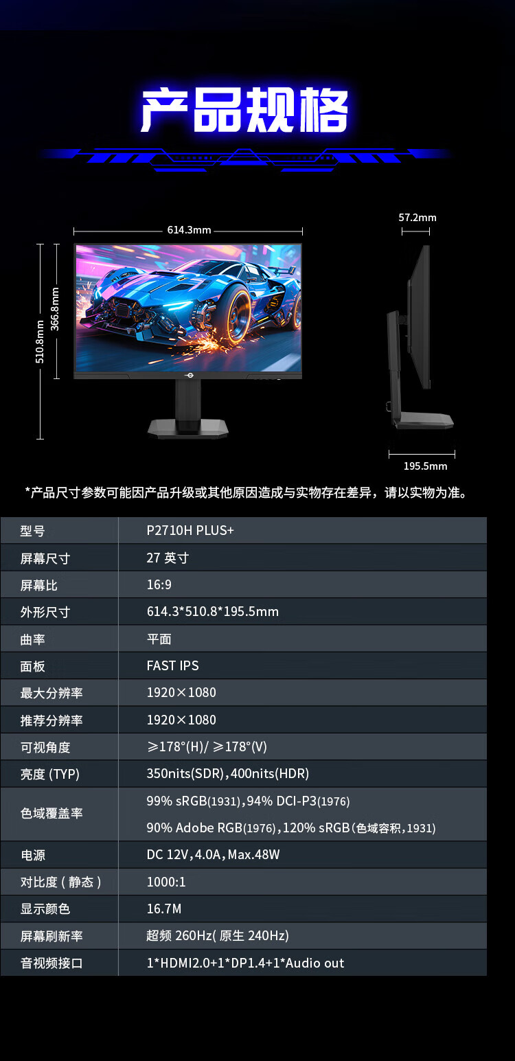 Titan Legion 27-inch 260Hz FastIPS hardware low blue light HDR400 wide color gamut E-sports game rotation lift PS5 display native 240Hz P2710H PLUS+