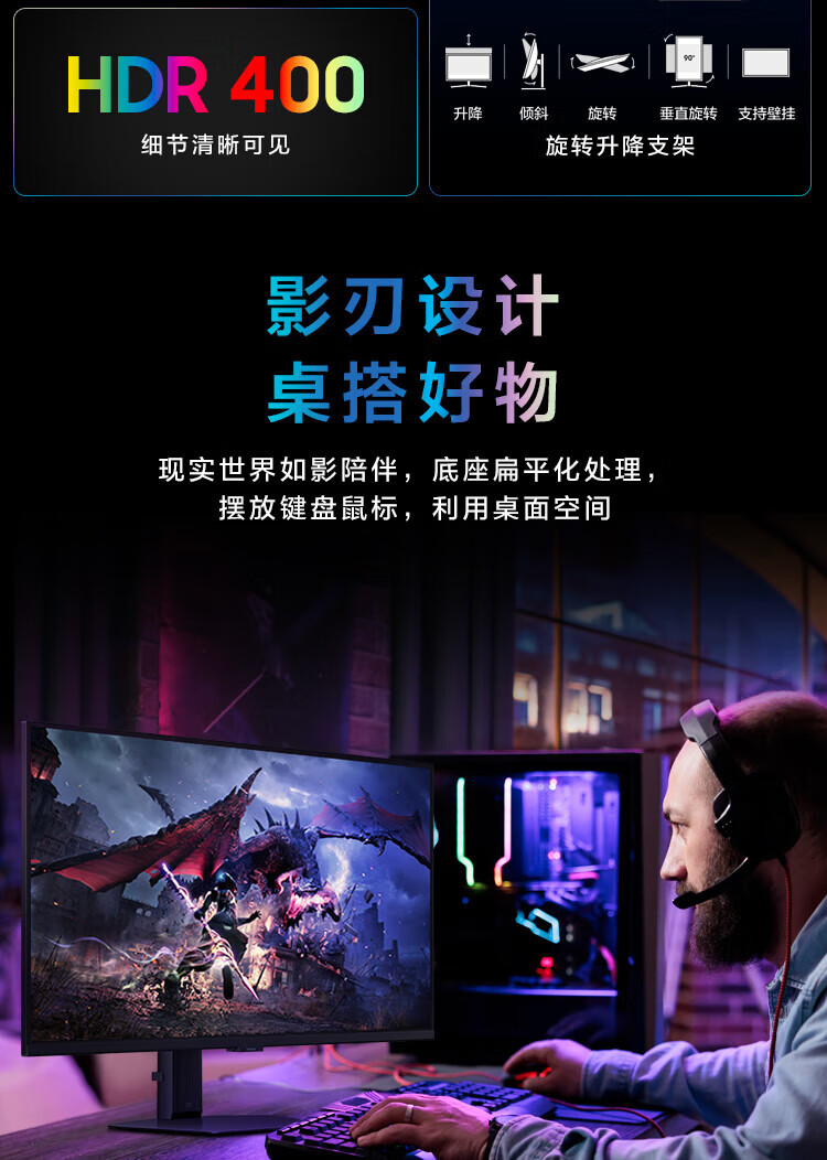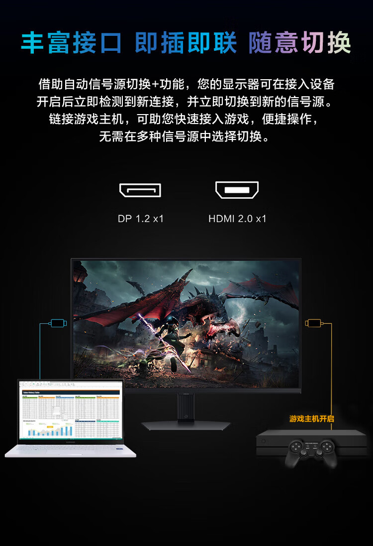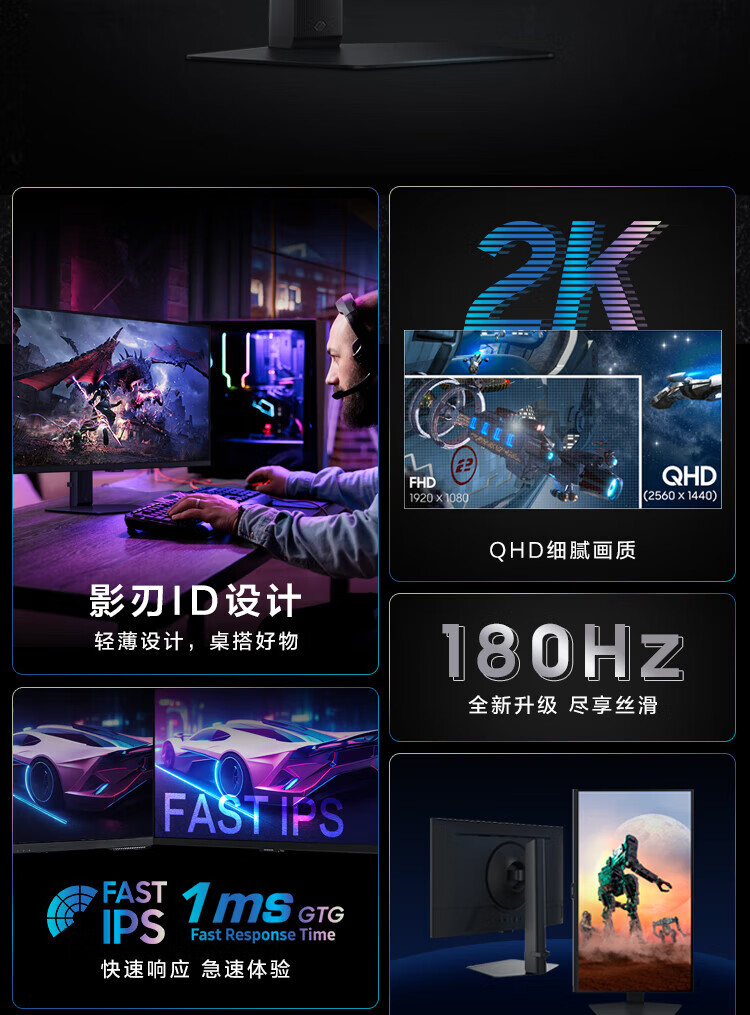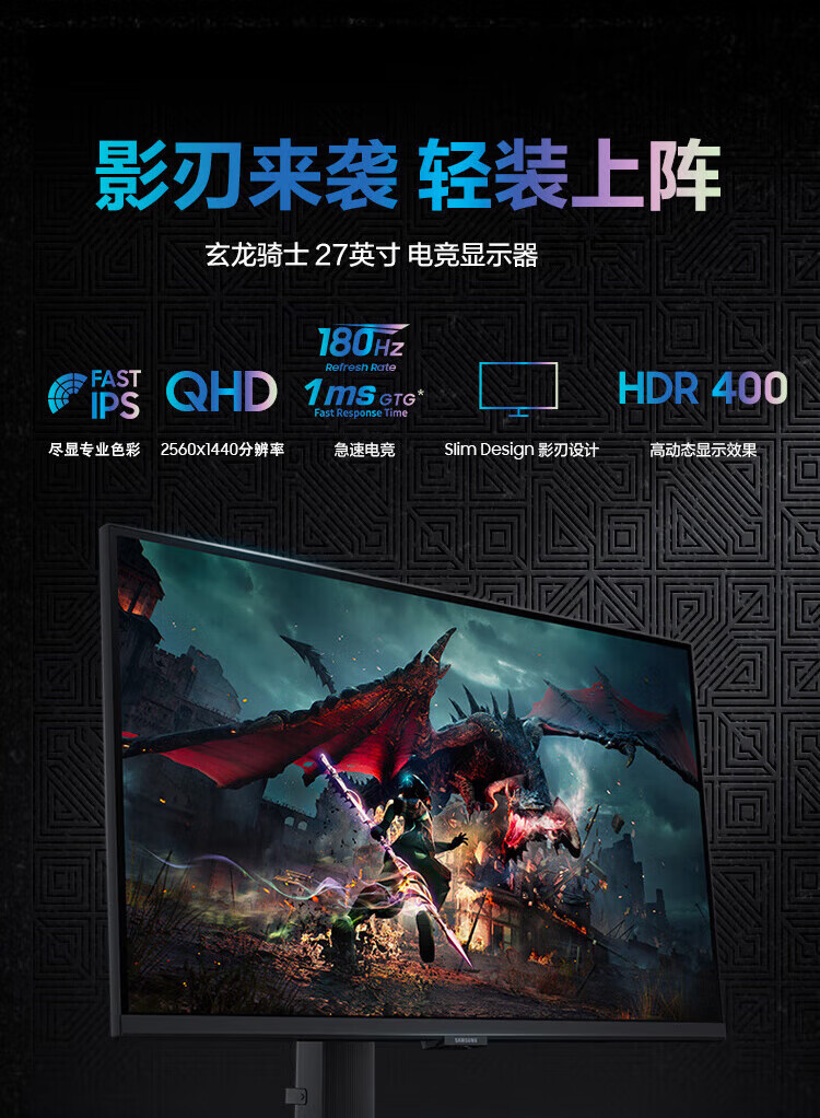 Samsung Odyssey G5 E-Sports Monitor 1ms Response FastIPS Professional Home Office Gaming High Brush Lift Rotating Display Free Worry-Free Service 27 2K 180 S27DG502EC Worry-Free Service