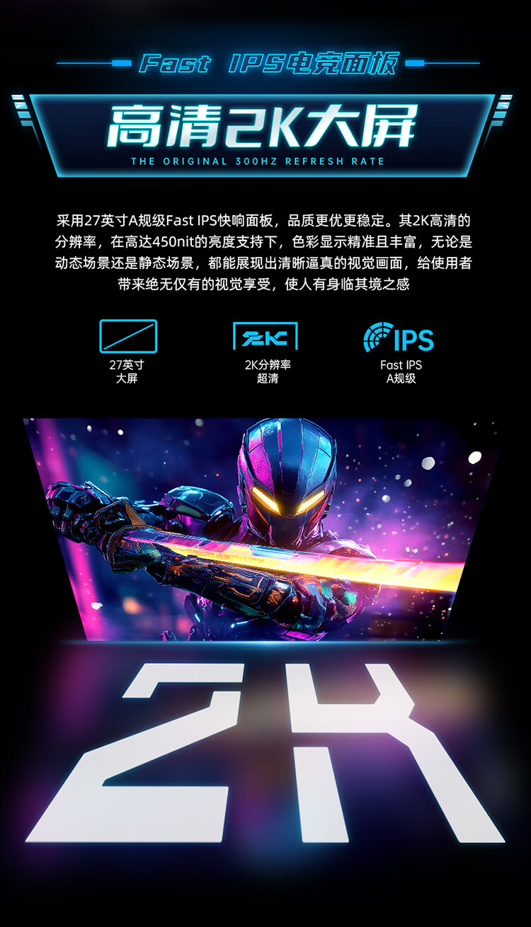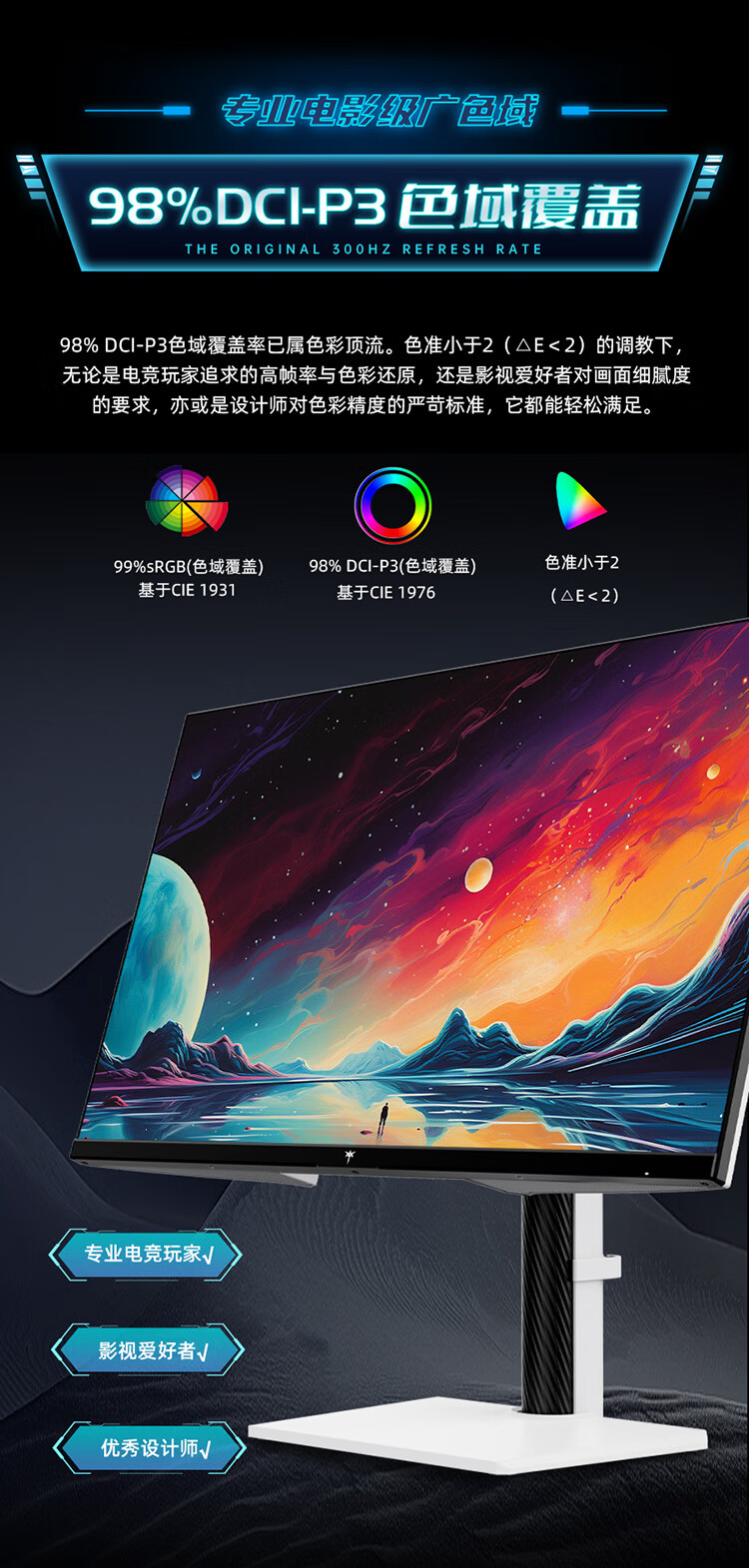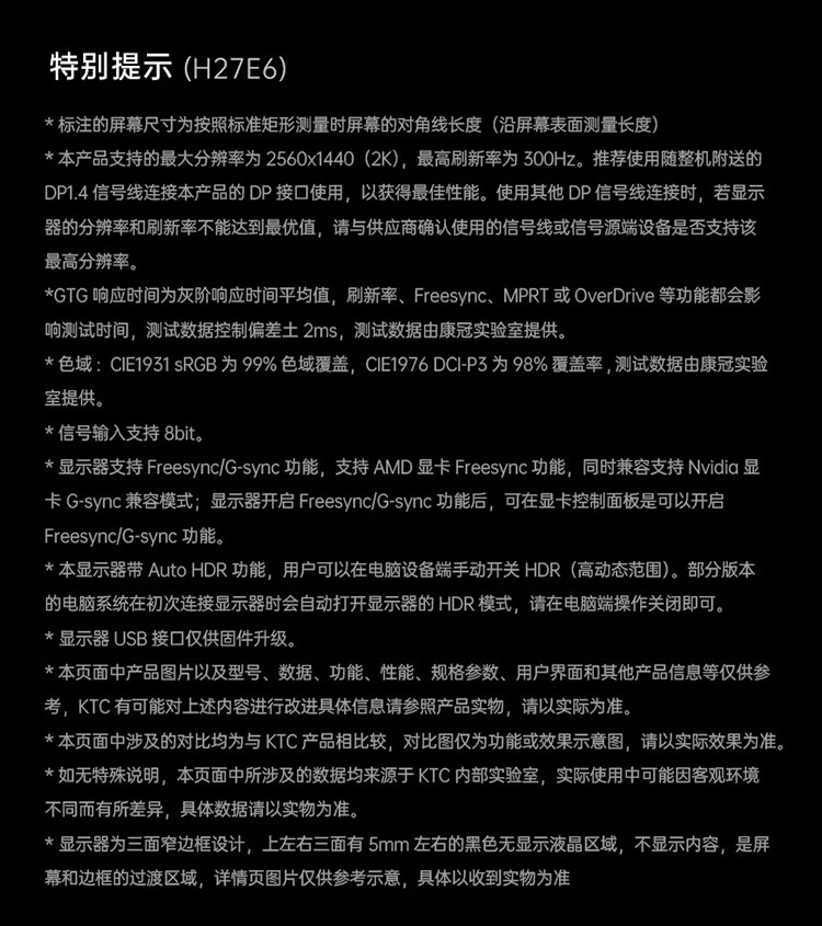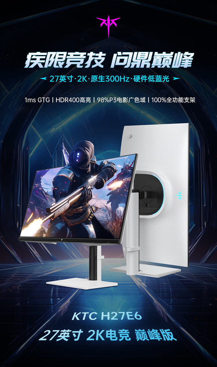 KTC 27-inch 2K native 300Hz overclocked 320Hz hardware low blue light HDR 450nit FastIPS gaming display lifting rotating bracket H27E6 white full blood gaming