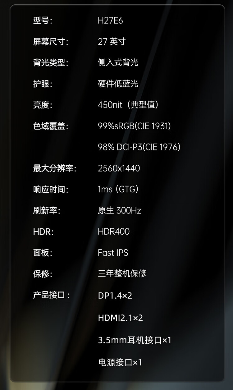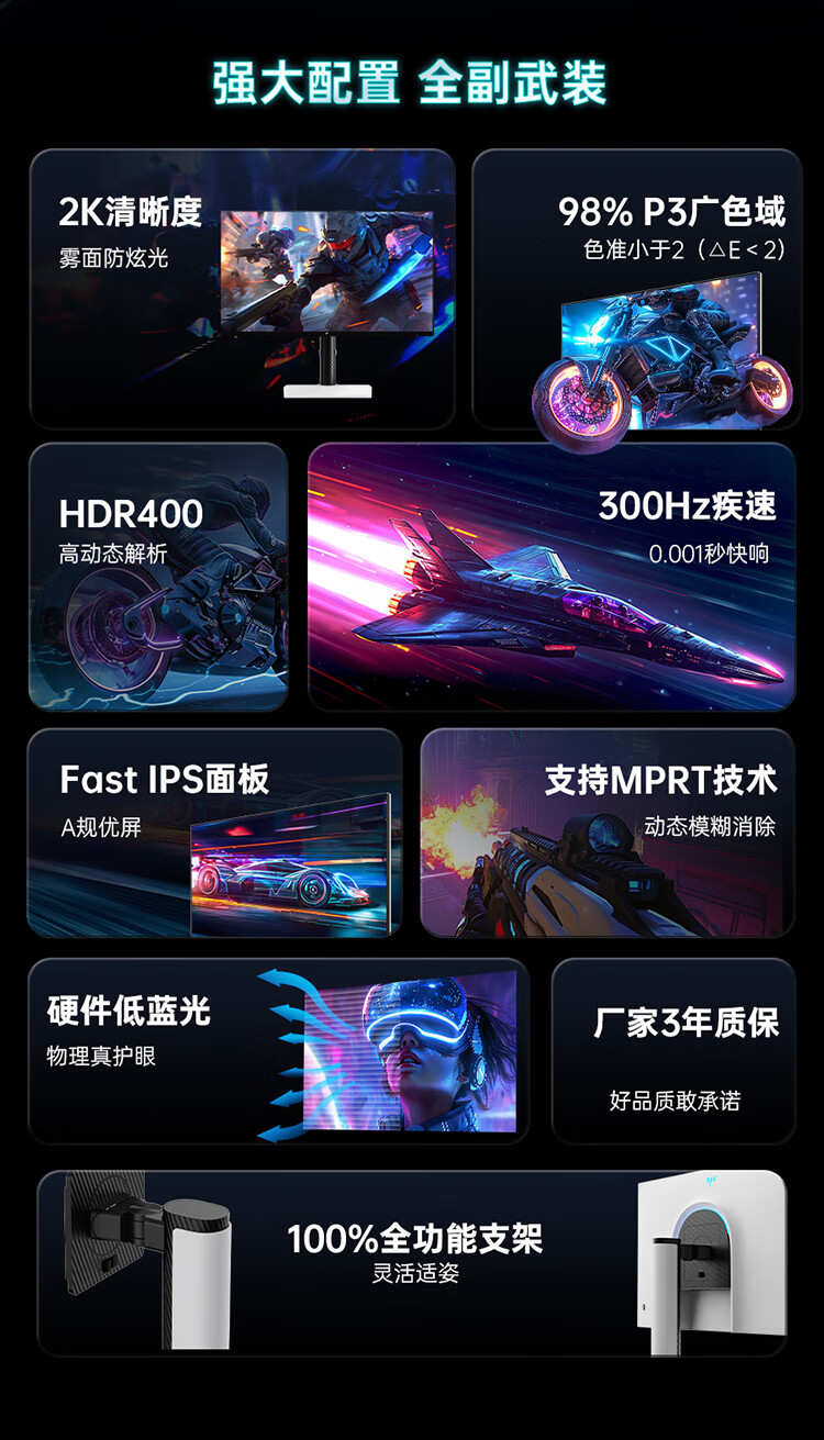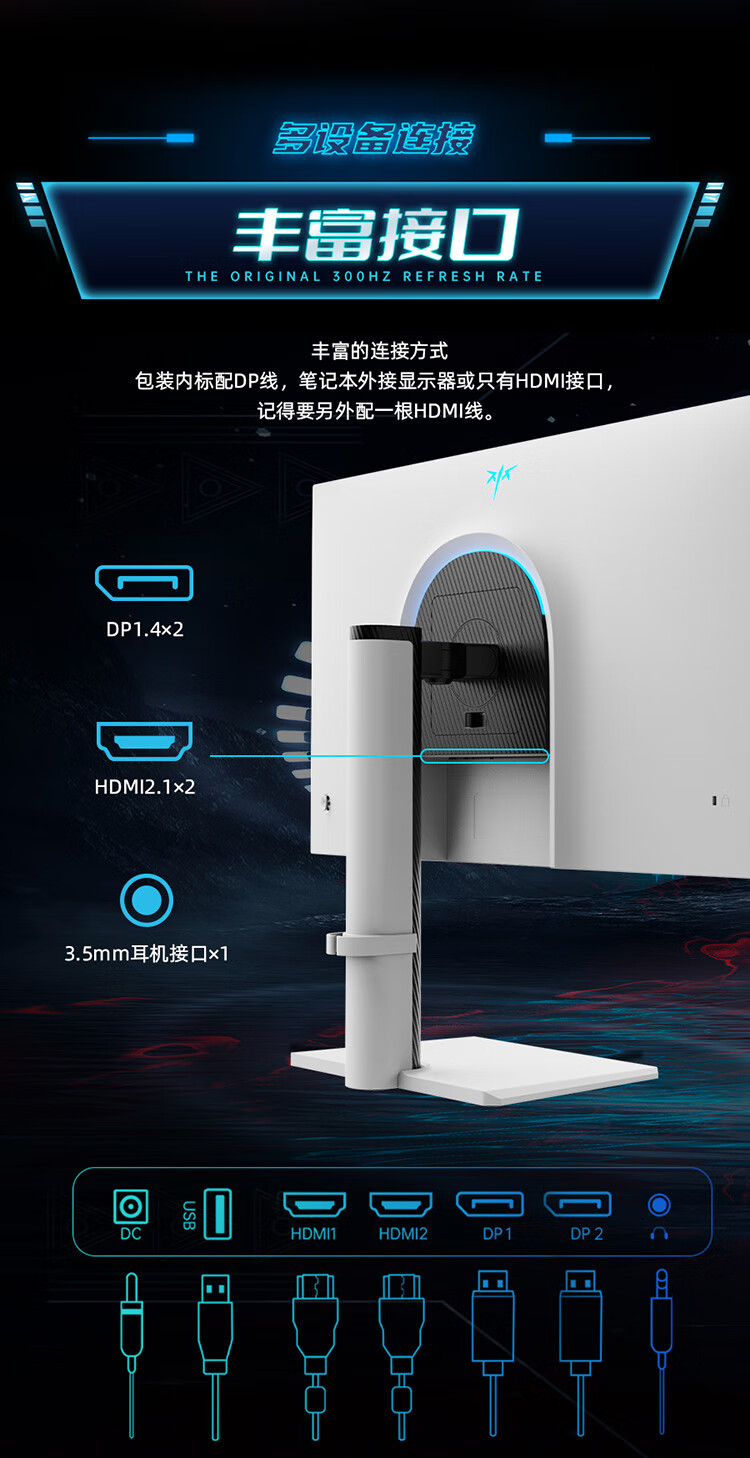 KTC 27-inch 2K native 300Hz overclocked 320Hz hardware low blue light HDR 450nit FastIPS gaming display lifting rotating bracket H27E6 white full blood gaming