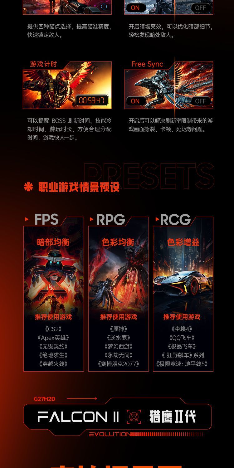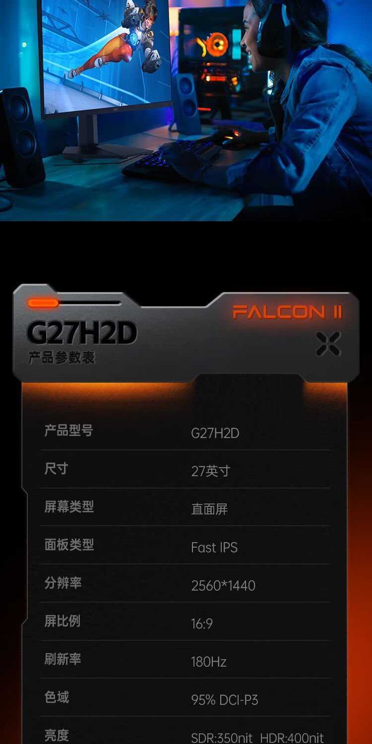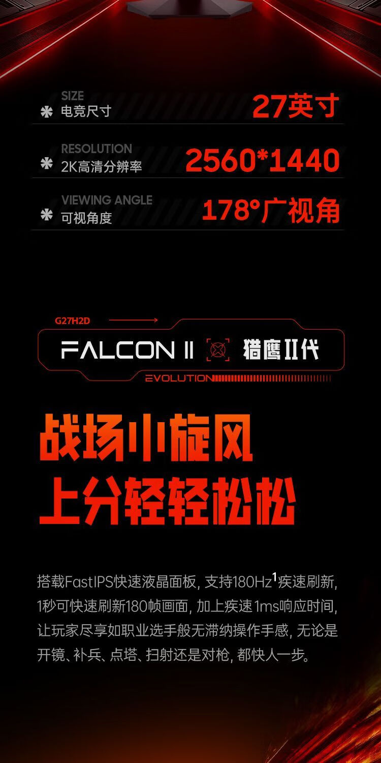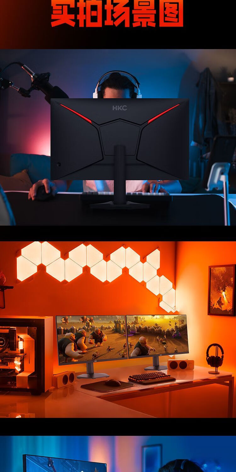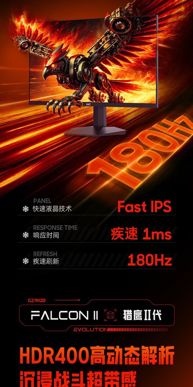 HKC 27-inch 2K 180Hz Fast IPS screen HD gaming display screen 1ms hardware low blue light DIC technology wall-mountable computer monitor G27H2D 24-inch/1K240HZ/hardware low blue light/G24H3D