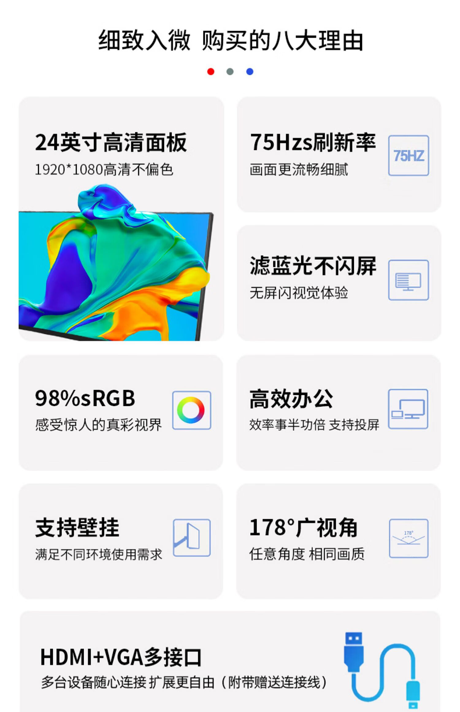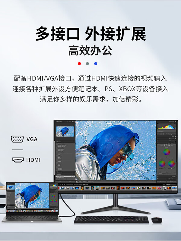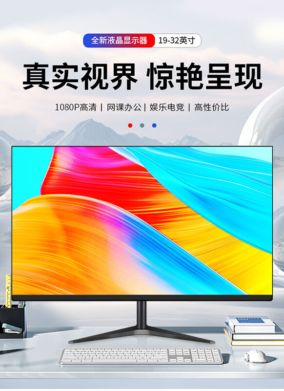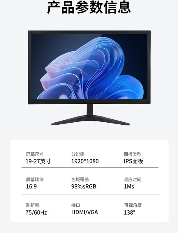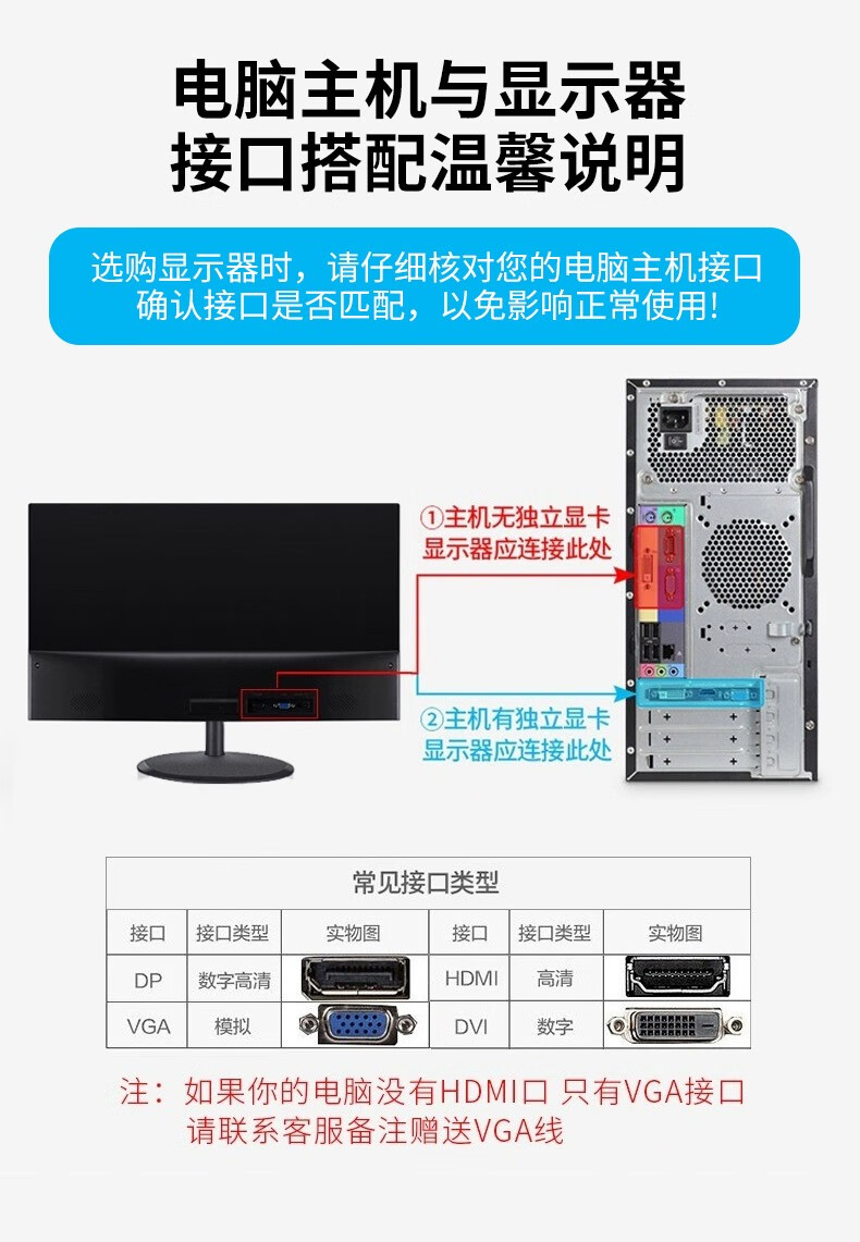 Dongguanxing 19-inch computer monitor 24-inch ultra-high-definition LCD 4K eye protection desktop office monitoring 27-inch display screen 27-inch framed VGA+HDMI dual interface V-shaped