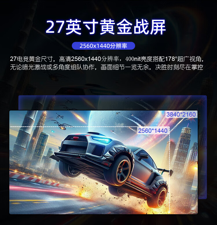 JD Logistics Monitor de deportes electrónicos 2K de 27 pulgadas LCD rápido HDR400 E-Sports Hardware de 1 ms Luz azul baja Fearless Compacto Monitor de computadora para juegos Delta 32 pulgadas / 4k / 60hz / Yahei