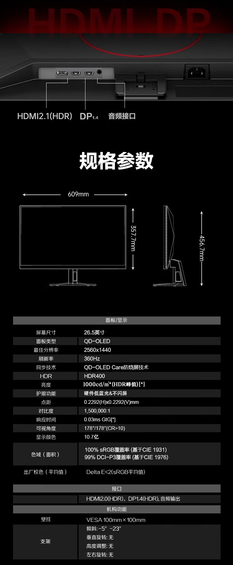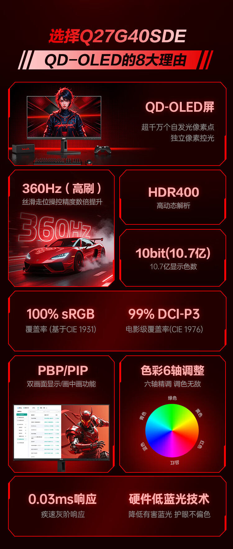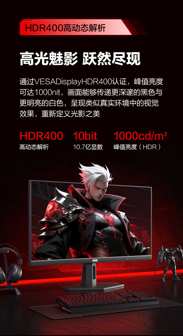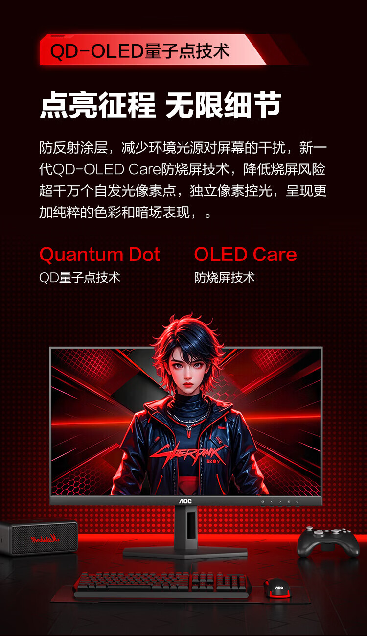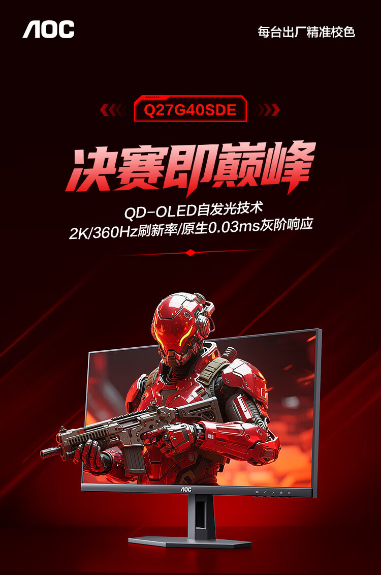 AOC 26,5-Zoll-Monitor 2K 360 Hz QD-OLED nativ 10 Bit nativ 0,03 ms HDR-Hardware Low Blue Light Computerspiel E-Sport-Display Blockbuster neues Produkt 2K 240 Hz Q27G40ZDF