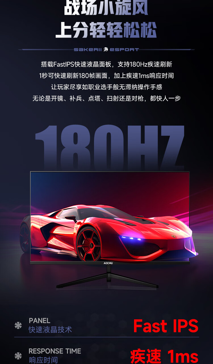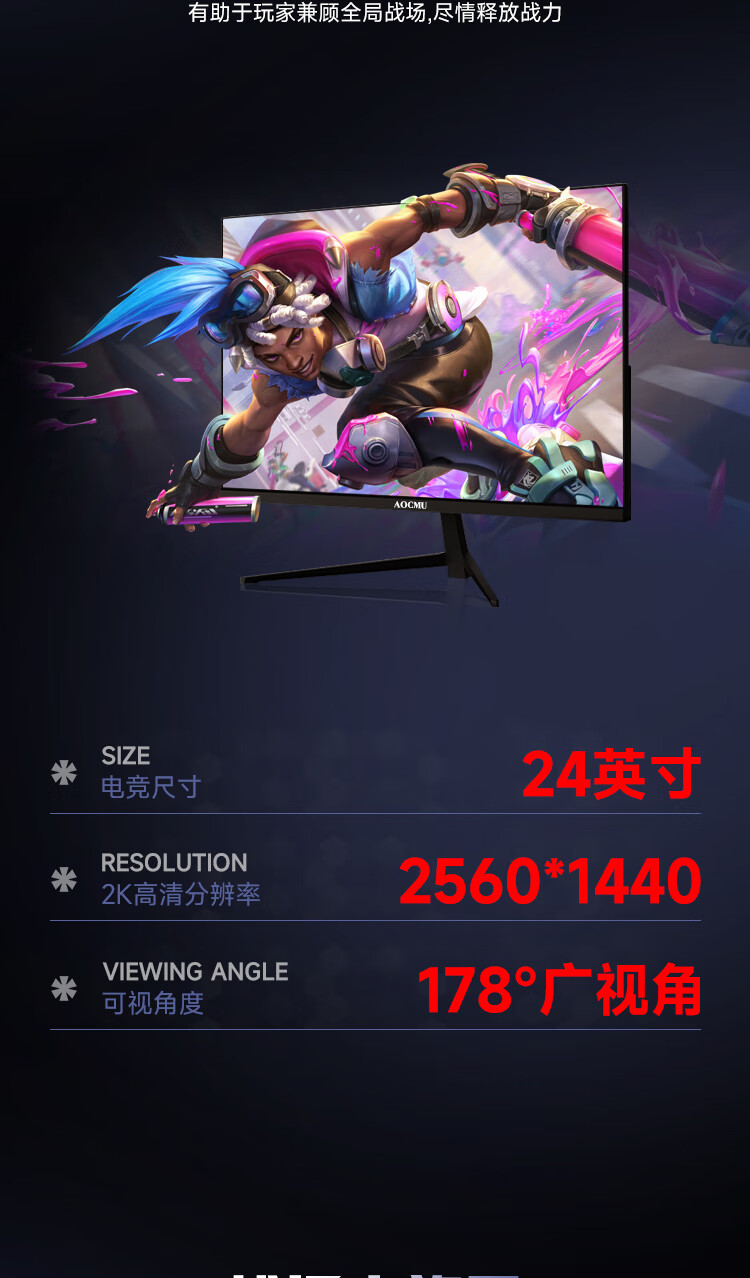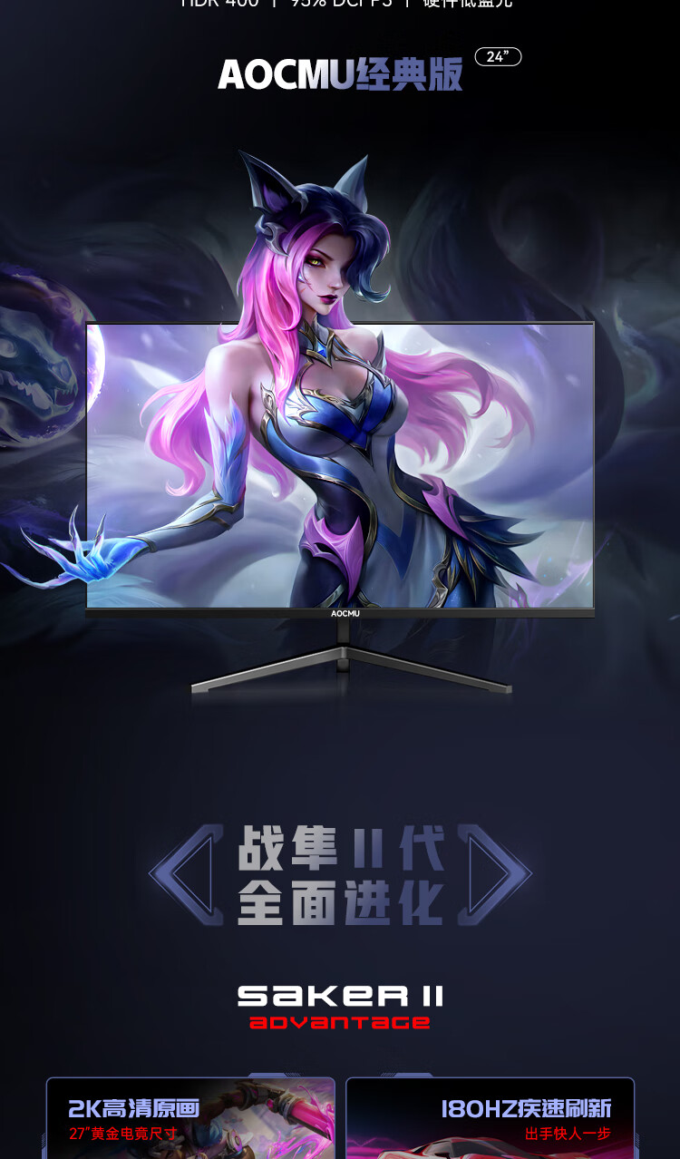 AOCMU 24-inch monitor 1K500HZ computer display high-definition 2K240Hz ultra-thin office design e-sports small steel cannon game IPS screen 24-inch 1K75HZ face-to-face narrow black limited time special price