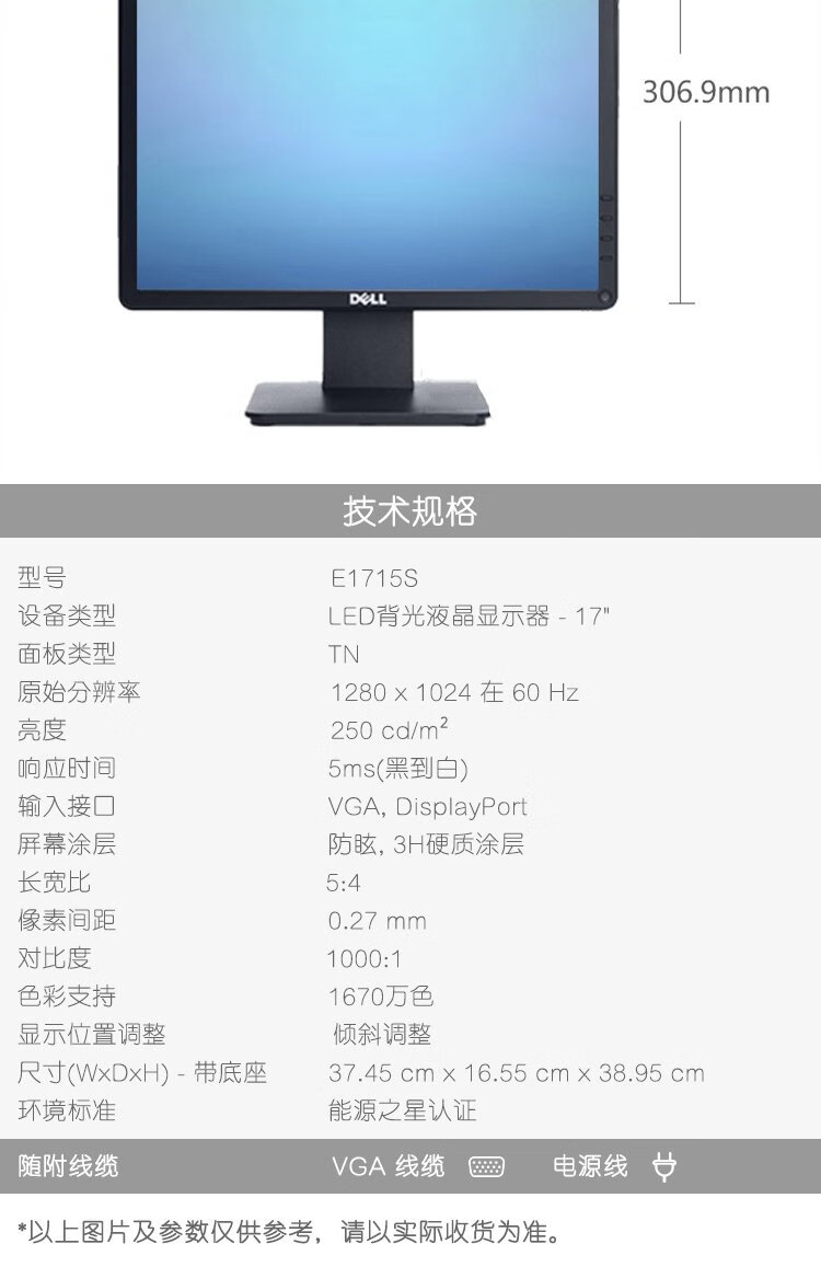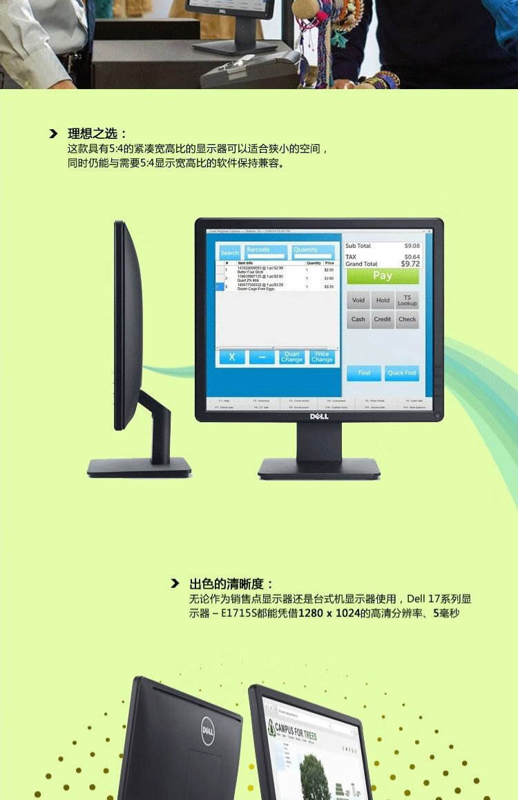 Dell (DELL) 17-Zoll-Büromonitor 5 4 Frontbildschirm verstellbare Halterung unterstützt Wandmontage Kassierer Finanzüberwachung Computermonitor E1715S