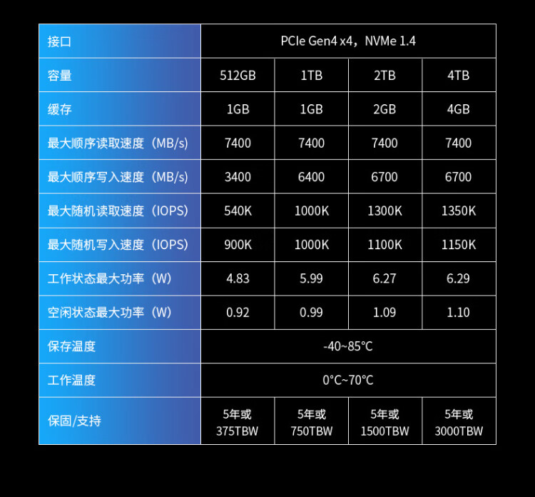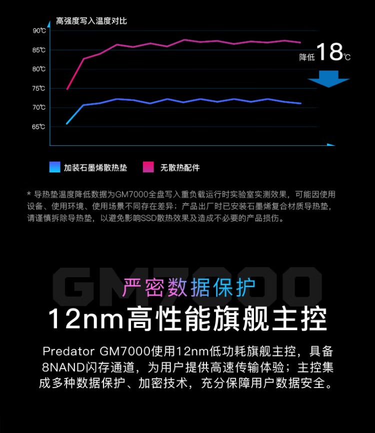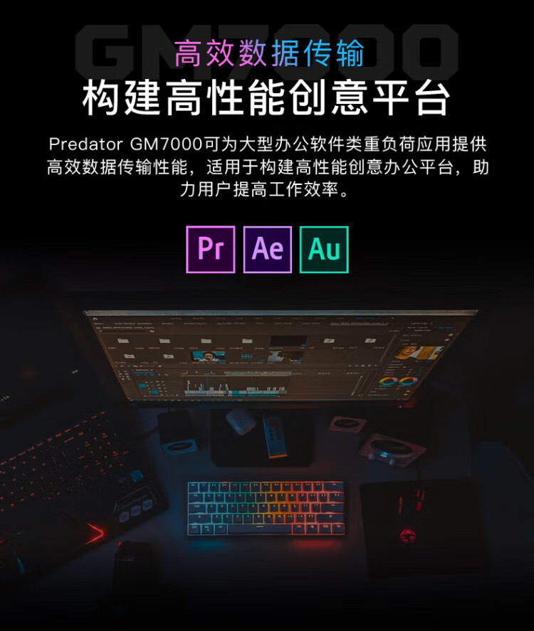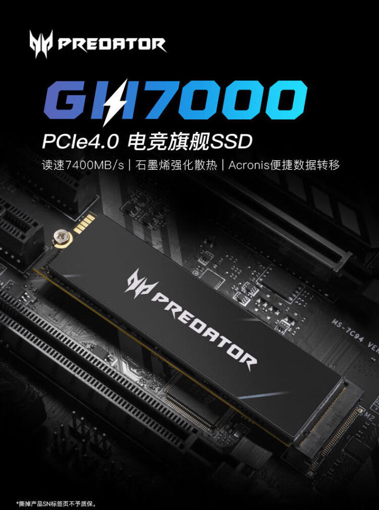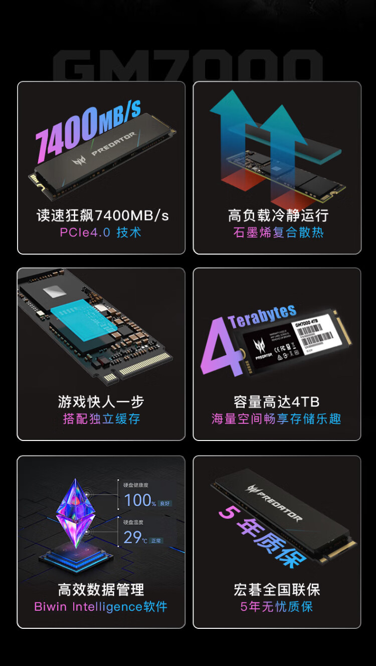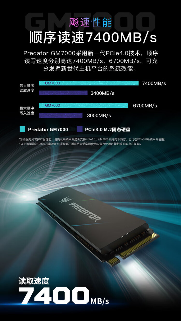 宏碁掠夺者(PREDATOR)2TB SSD固态硬盘 M.2接口(NVMe协议) GM7000系列|NVMe PCIe 4.0读速7400MB/s  AI电脑存储配件