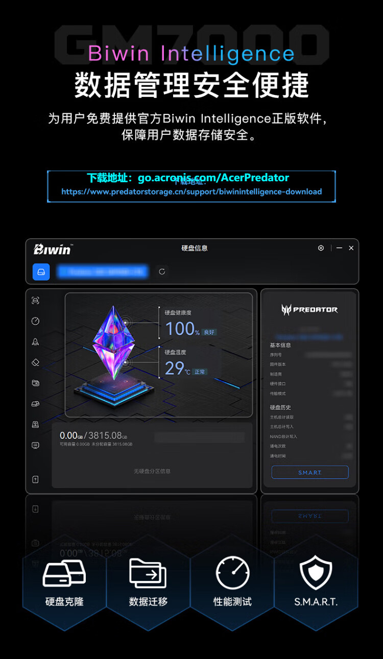 宏碁掠夺者(PREDATOR)2TB SSD固态硬盘 M.2接口(NVMe协议) GM7000系列|NVMe PCIe 4.0读速7400MB/s AI电脑存储配件