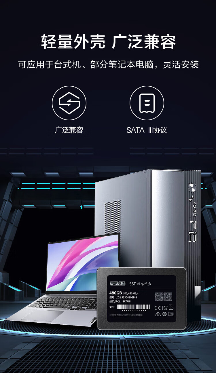 京东京造 3系列 480GB SATA3.0接口 SSD固态硬盘 台式机笔记本电脑装机升级扩容