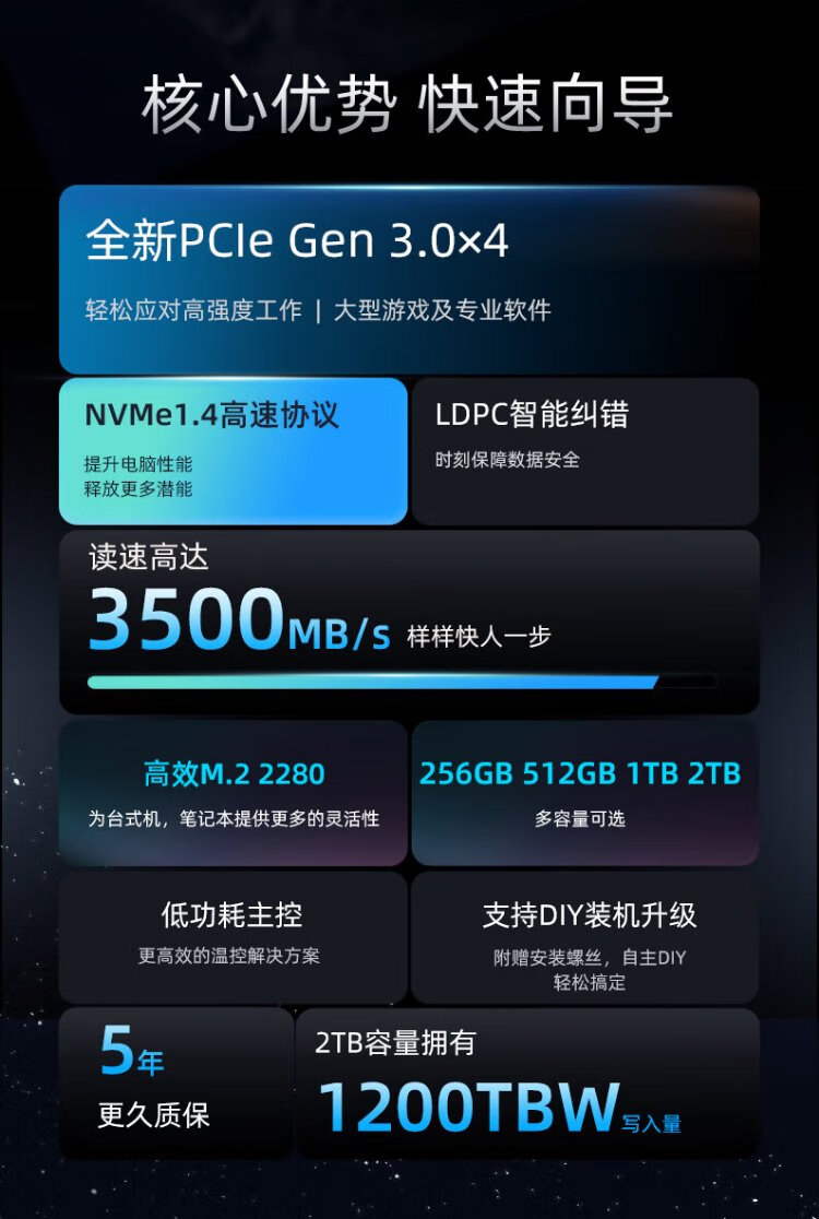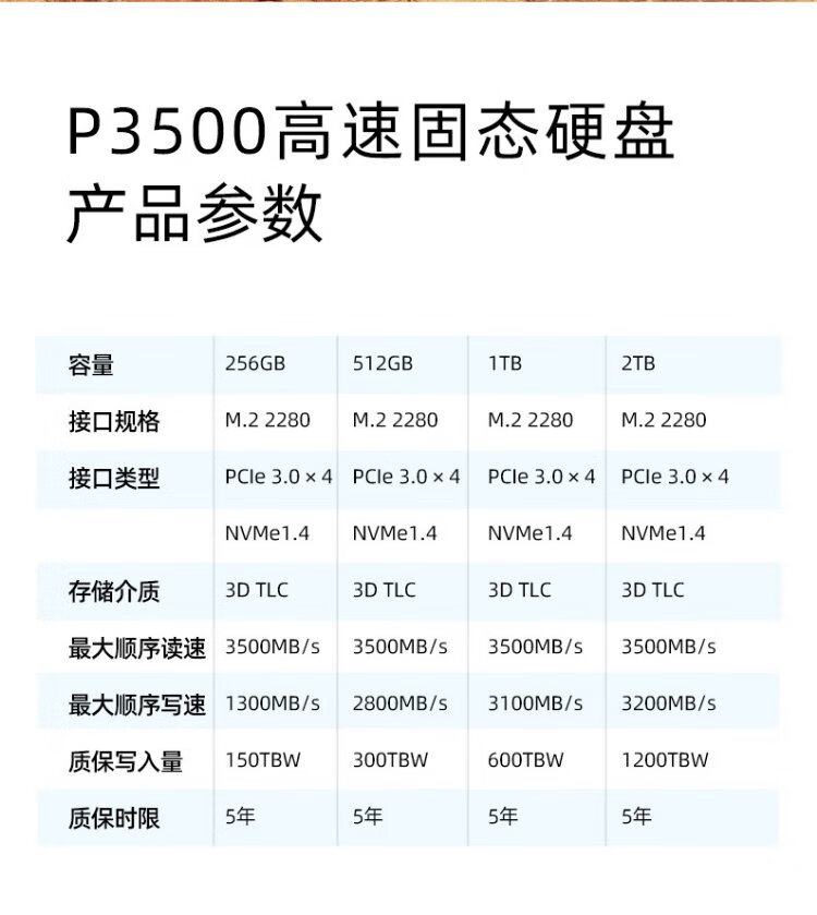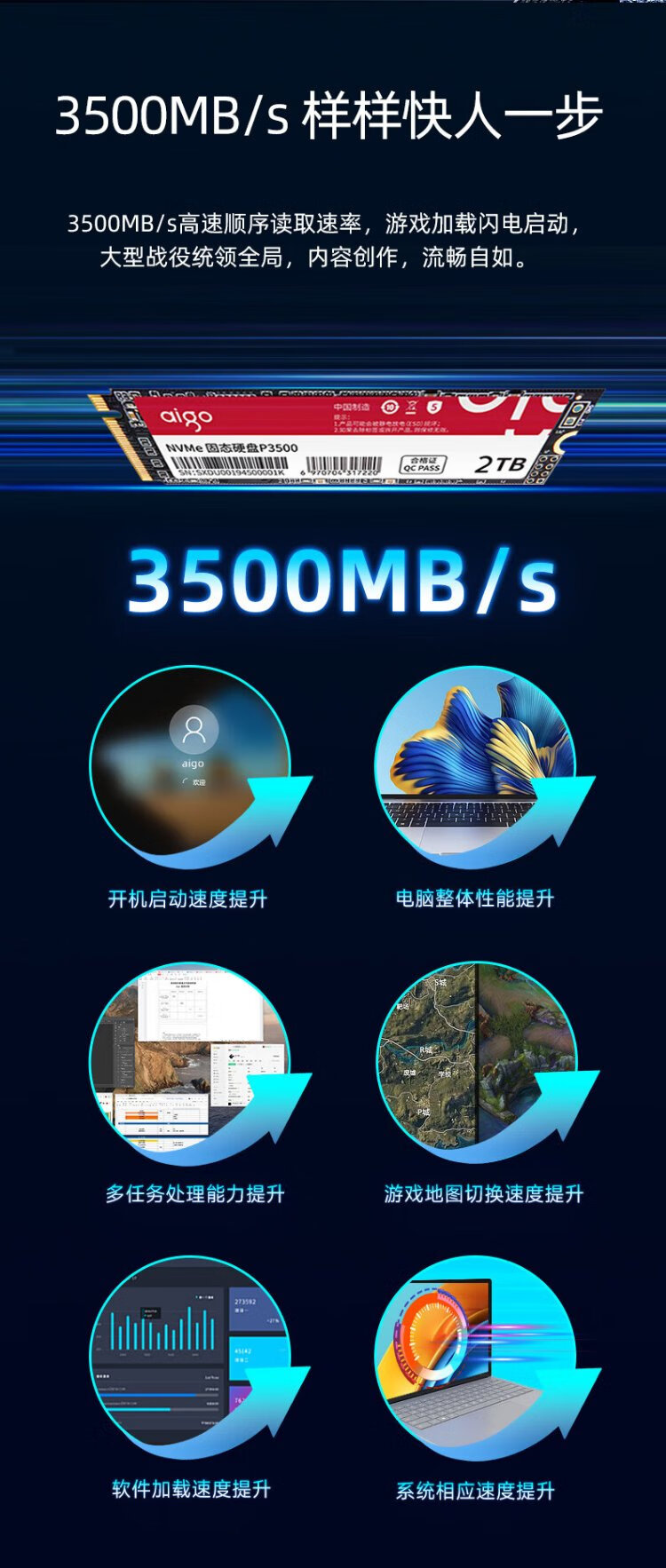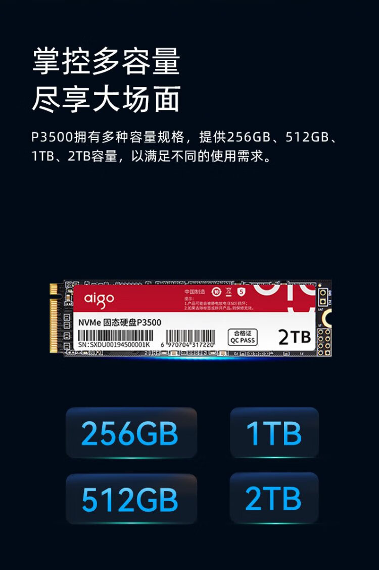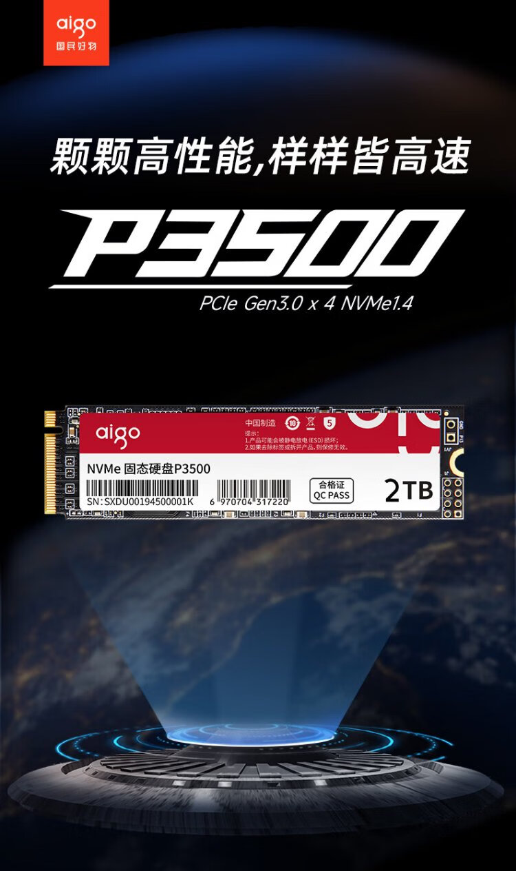 爱国者(aigo)512GB SSD固态硬盘 M.2接口NVMe协议 PCIe3.0原厂TLC颗粒 台式机笔记本通用P3500 读速3500MB/s