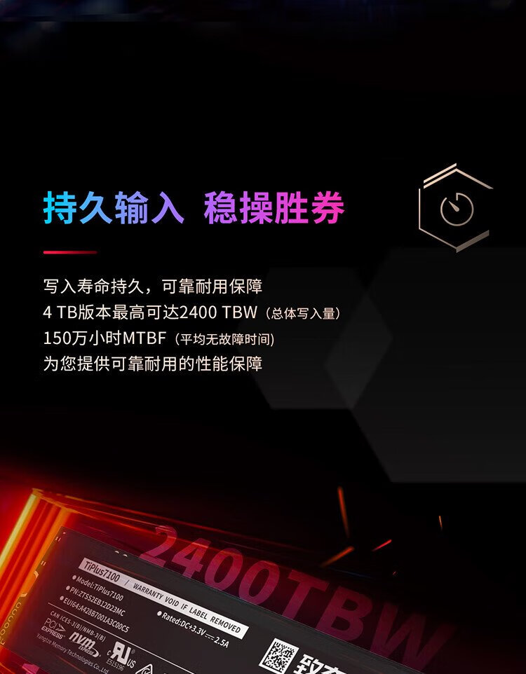致态(ZhiTai)长江存储 2TB SSD固态硬盘 NVMe M.2接口 TiPlus7100系列
