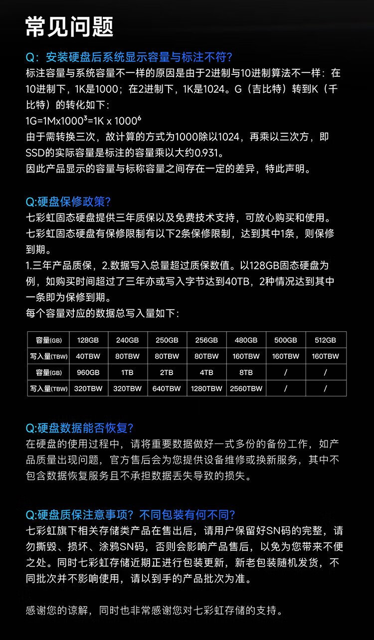 Colorfire七彩虹1TB SSD固态硬盘 SATA3.0接口 镭风CF500系列 热销款