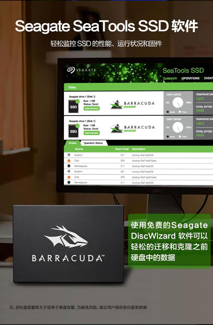 希捷(SEAGATE)256GB SSD固态硬盘SATA3.0接口 台式机笔记本电脑硬盘 读速高达540MB/s 希捷酷鱼