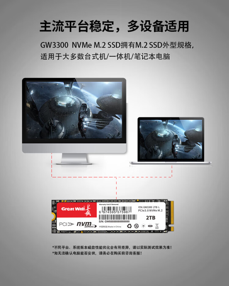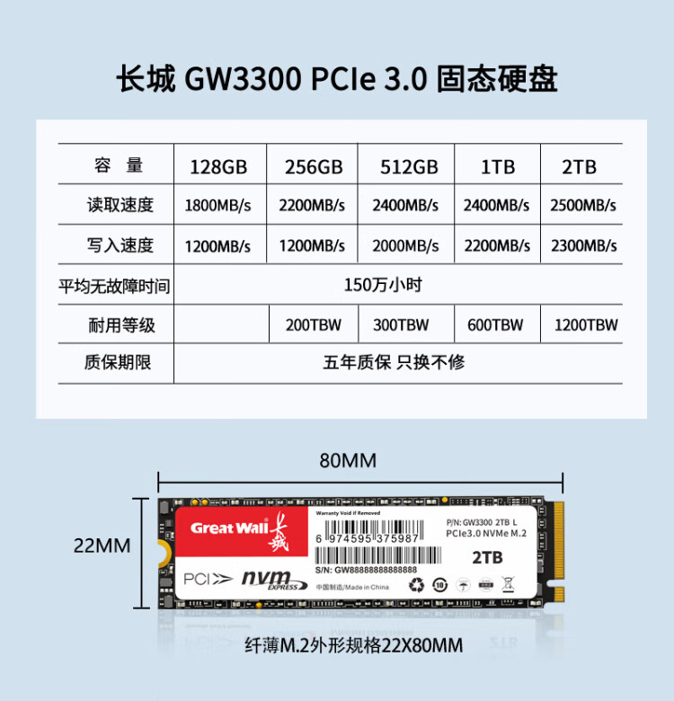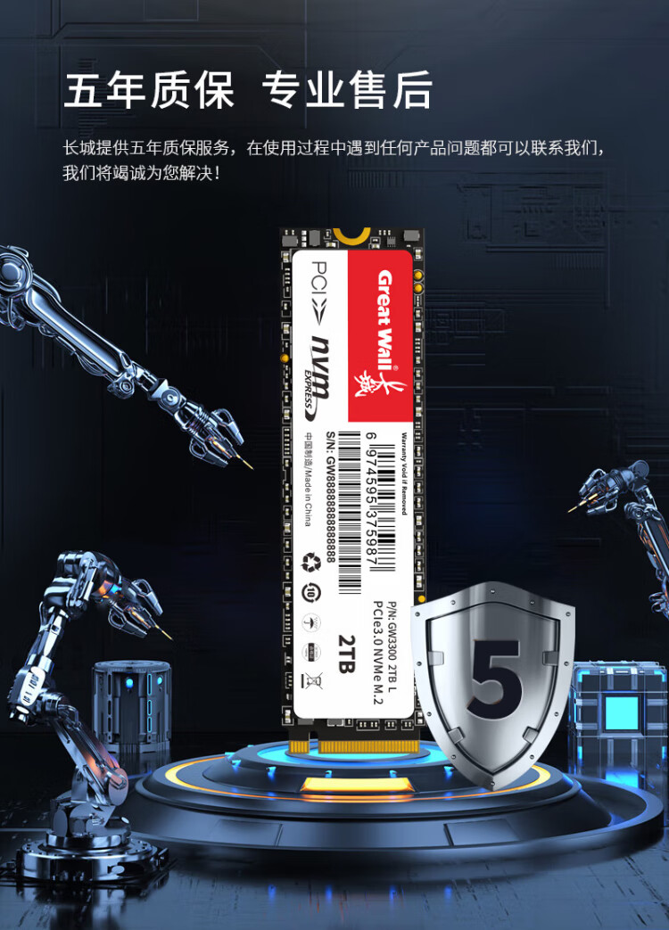 长城(Great Wall)512GB SSD固态硬盘 M.2接口(NVMe协议)PCIe 3.0x4 GW3300系列