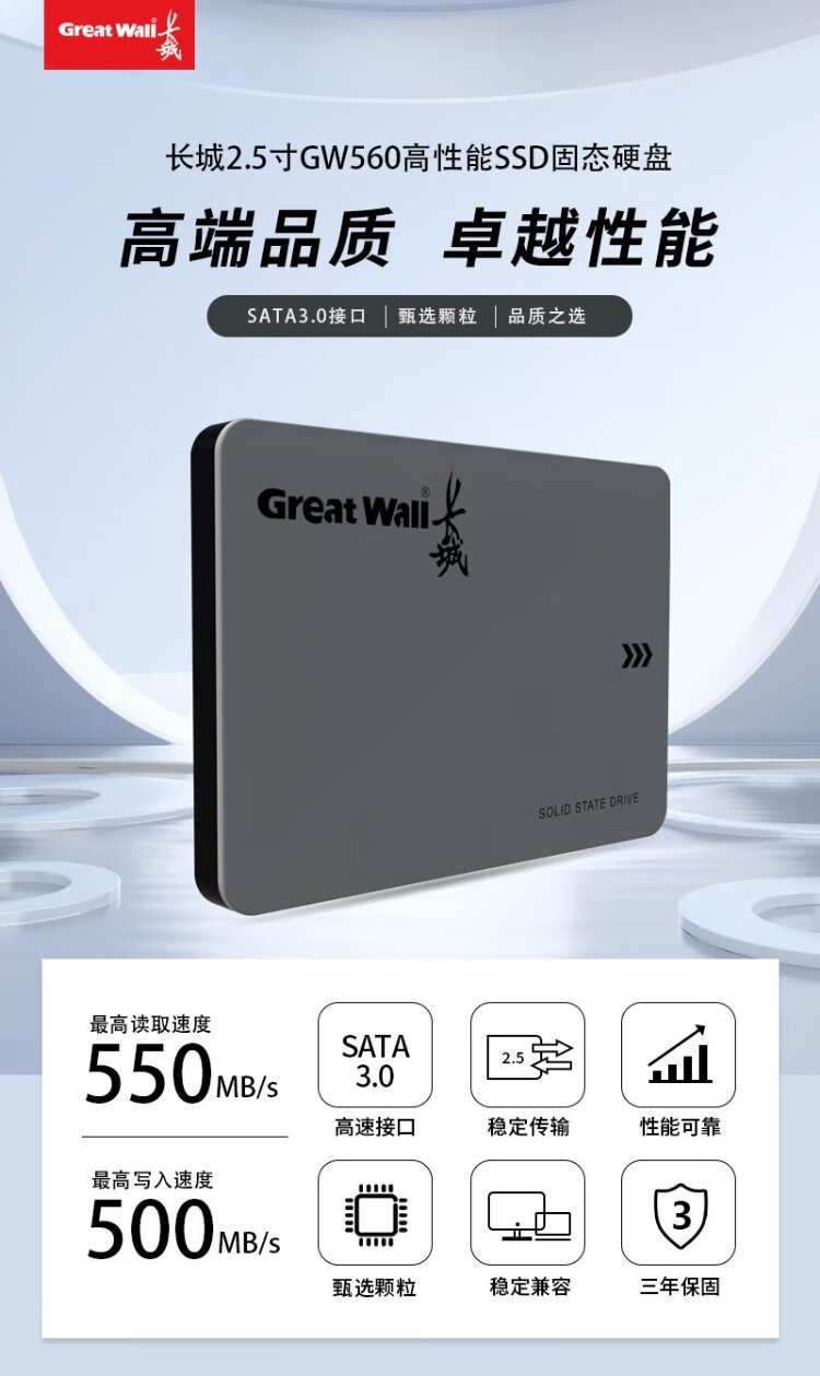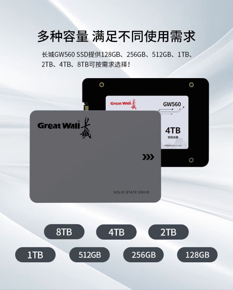 长城(Great Wall) 4TB SSD固态硬盘 SATA3.0接口 读速550MB/S台式机/笔记本通用 GW560系列