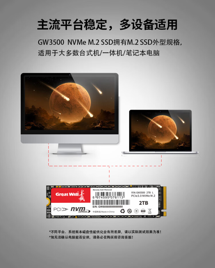 长城(Great Wall)512GB SSD固态硬盘 M.2接口(NVMe协议)PCIe 3.0x4 GW3500系列 读速可高达3500MB/s