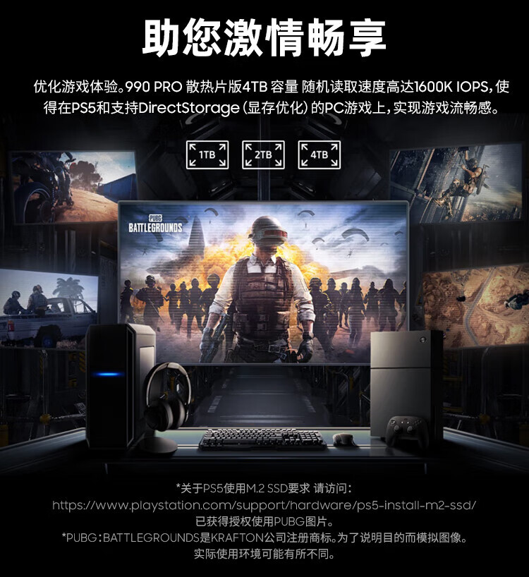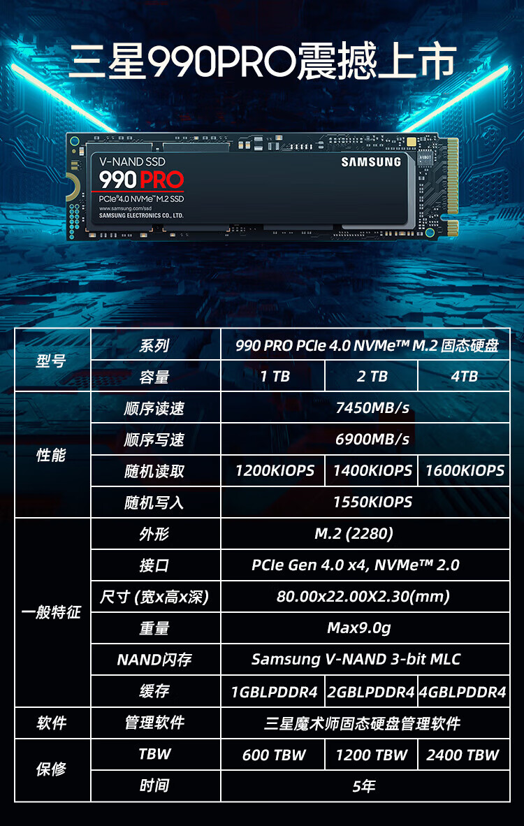三星(SAMSUNG)4TB SSD固态硬盘 M.2接口(NVMe协议PCIe 4.0 x4) AI电脑配件 读速7450MB/S 990 PRO