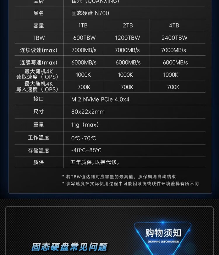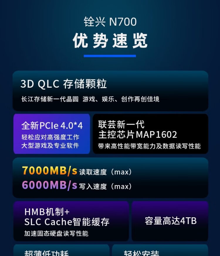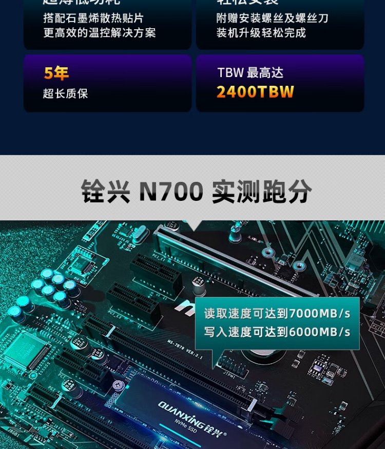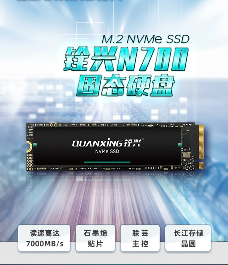 铨兴(QUANXING)1TB SSD固态硬盘 AI PC存储配件 M.2接口 2280(NVME协议)PCIe4.0 读速7000MB/s N700