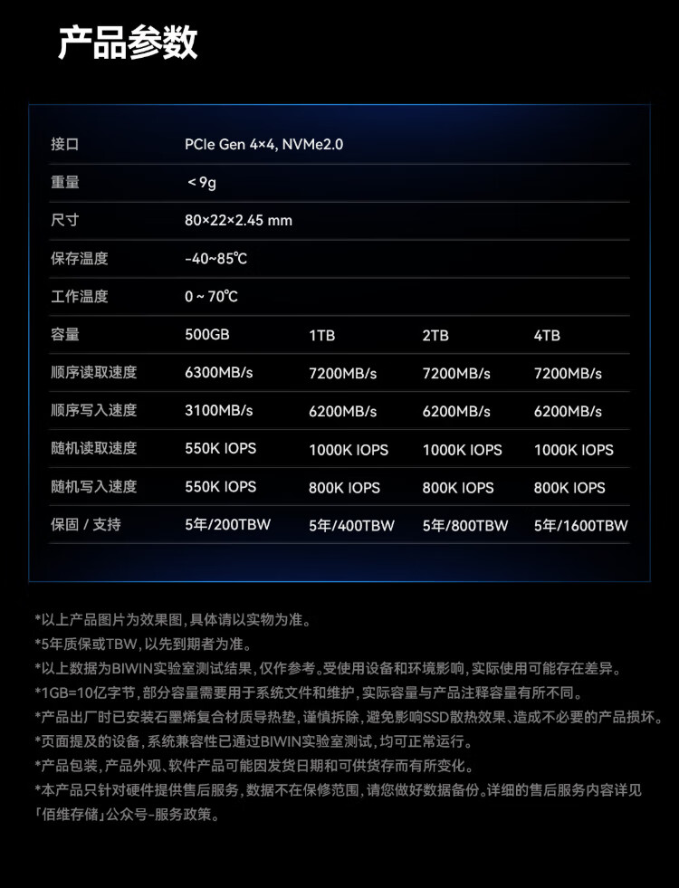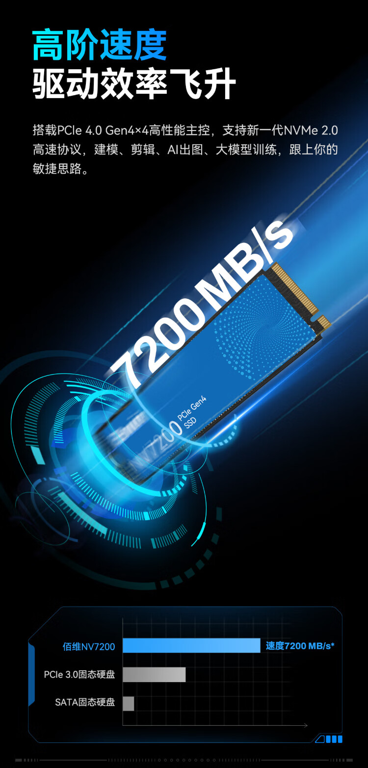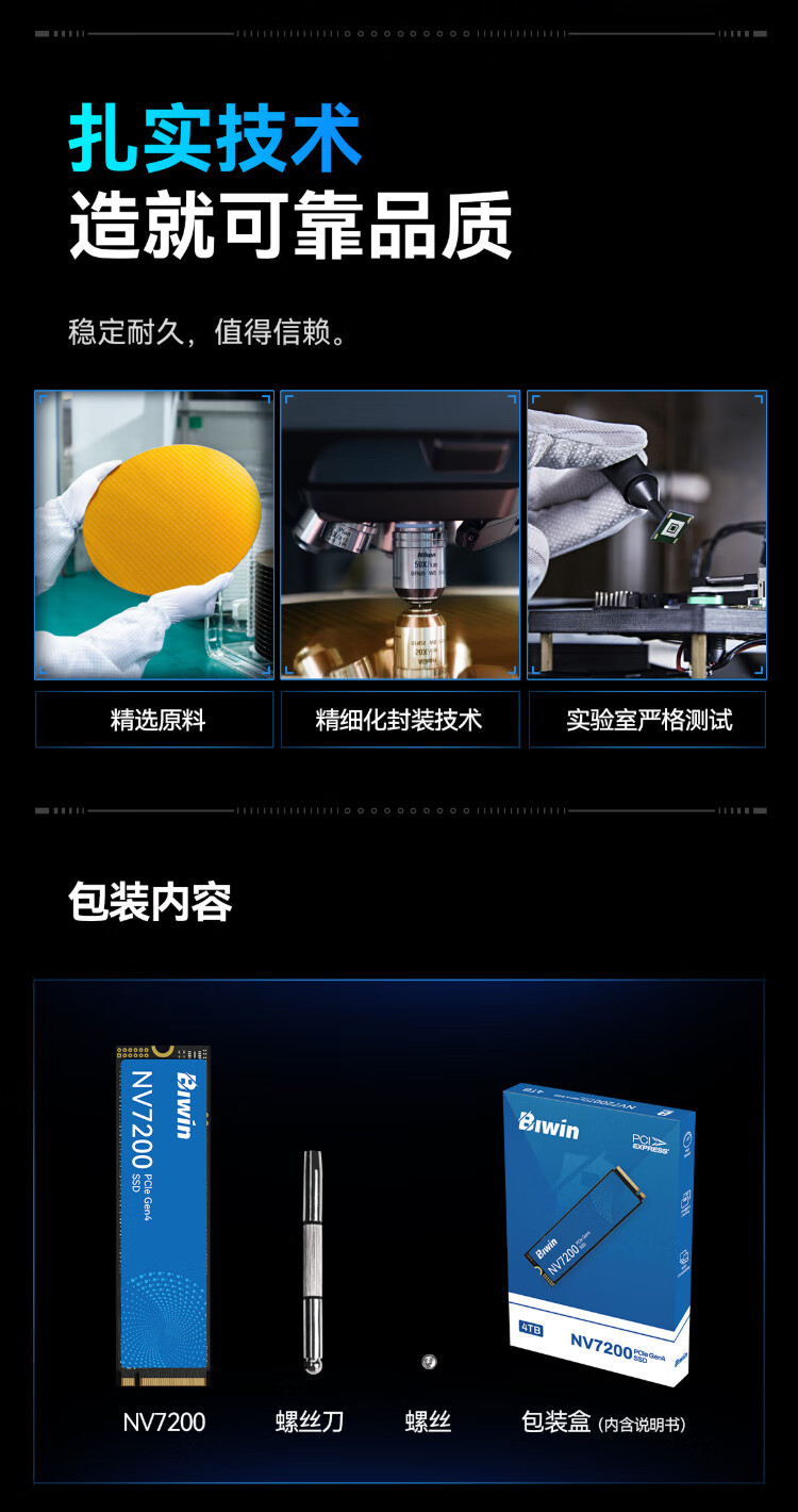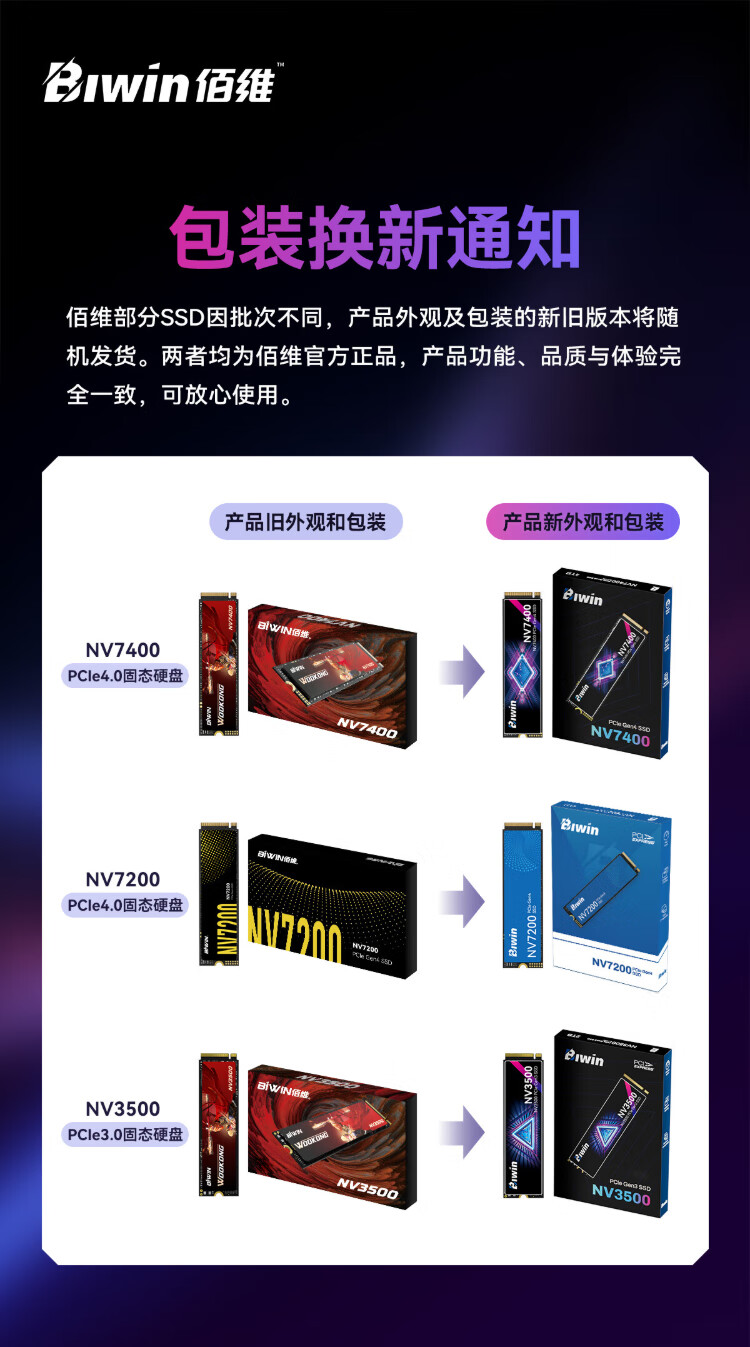 佰维(BIWIN)1TB SSD固态硬盘M.2接口(NVMe协议)NV7200长江存储颗粒 PCIe4.0读速7200MB/s(新老包装随机发货)