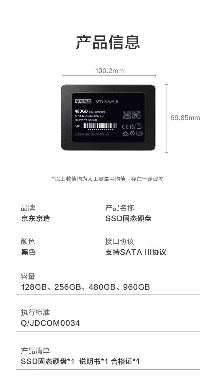 京东京造 3系列 128GB SATA3.0接口 SSD固态硬盘 台式机笔记本电脑装机升级扩容