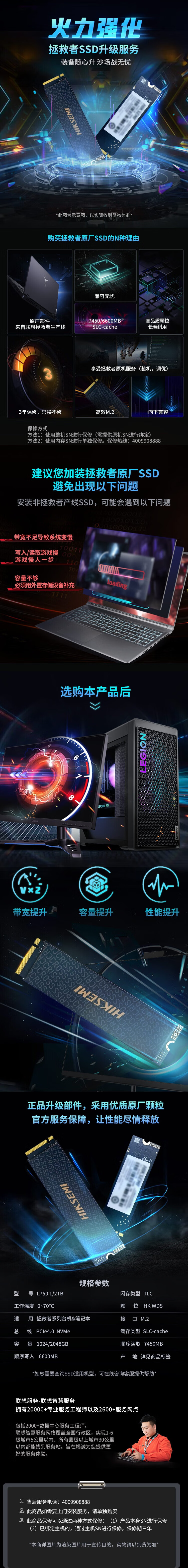 联想(Lenovo)拯救者原装 1TB SSD固态硬盘 联芸定制 M.2接口(NVMe协议)  L750系列 PCIe4.0 游戏本 PS5兼容