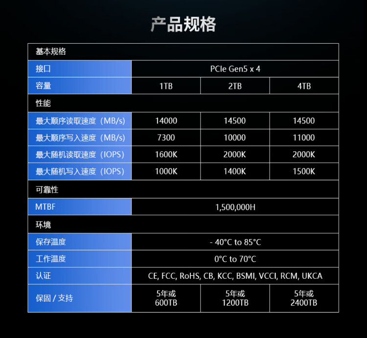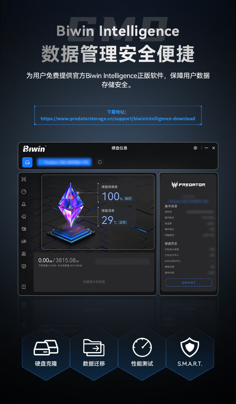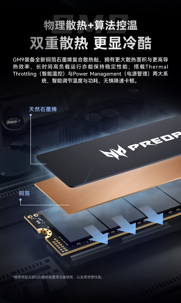 宏碁掠夺者(PREDATOR)4TB SSD固态硬盘 M.2接口(NVMe协议) GM9系列 NVMe PCIe 5.0读速14500MB/s AI电脑存储配件