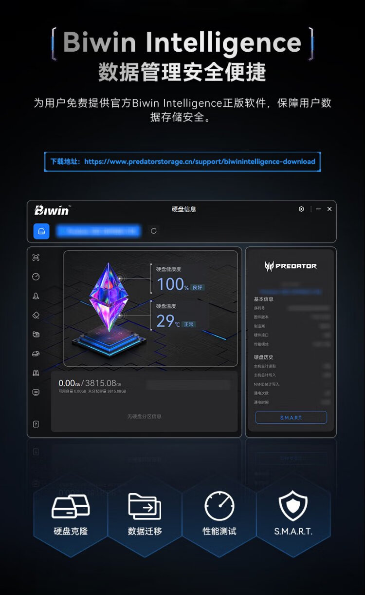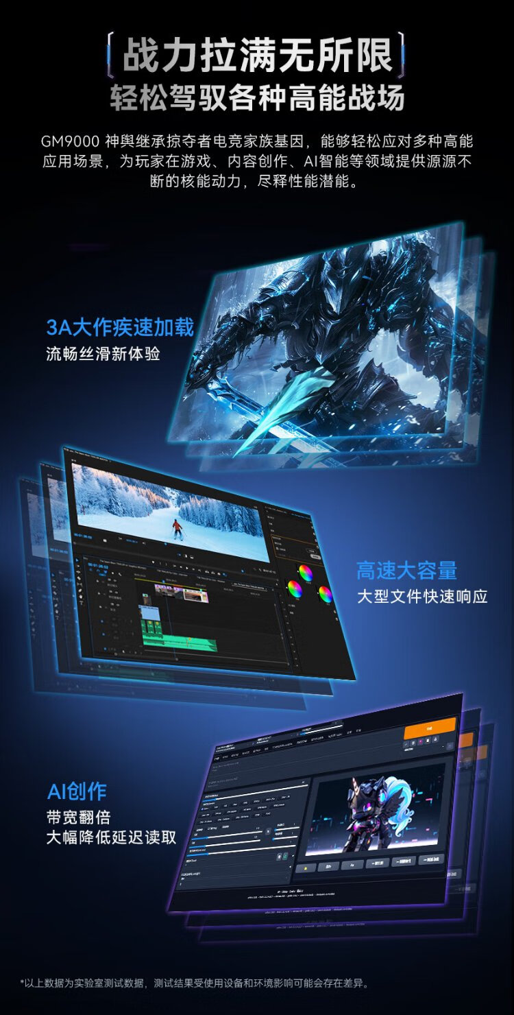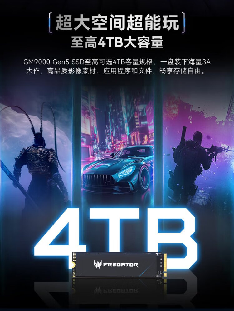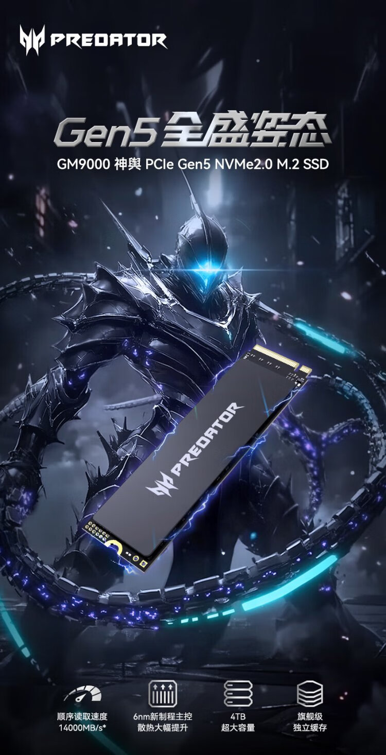 宏碁掠夺者(PREDATOR)4TB SSD固态硬盘 M.2接口(NVMe协议) GM9000神舆系列 NVMe PCIe 5.0读速14000MB/s AI电脑存储配件