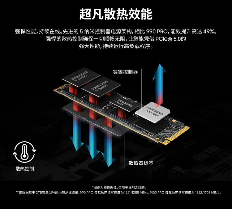 三星(SAMSUNG)1TB SSD固态硬盘 M.2接口(NVMe协议PCIe5.0*4)AI电脑配件 读速14700MB/S 9100 PRO