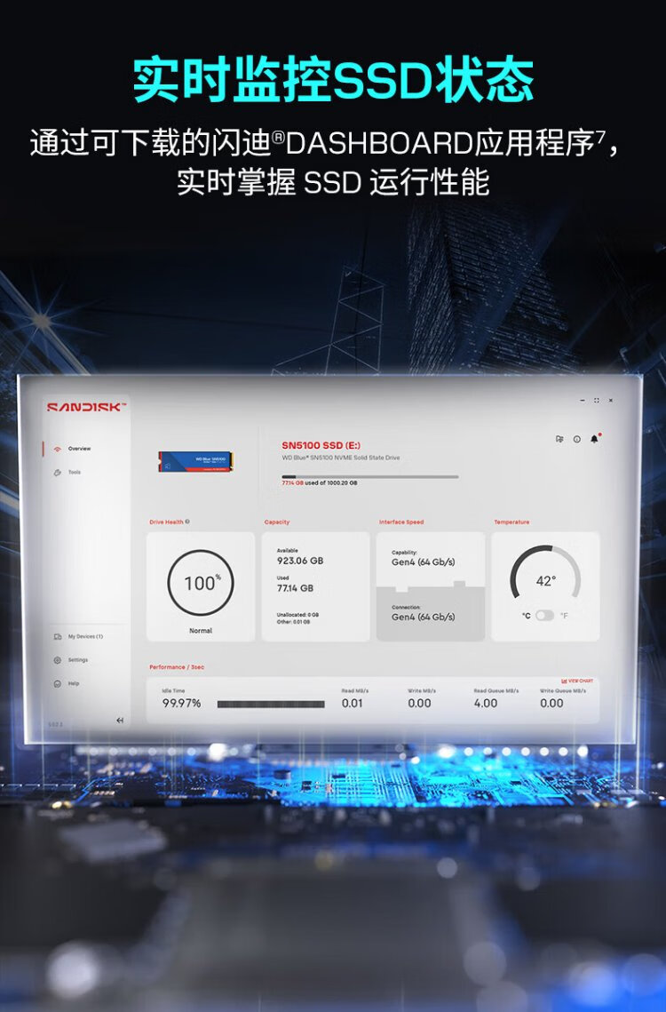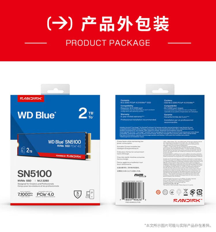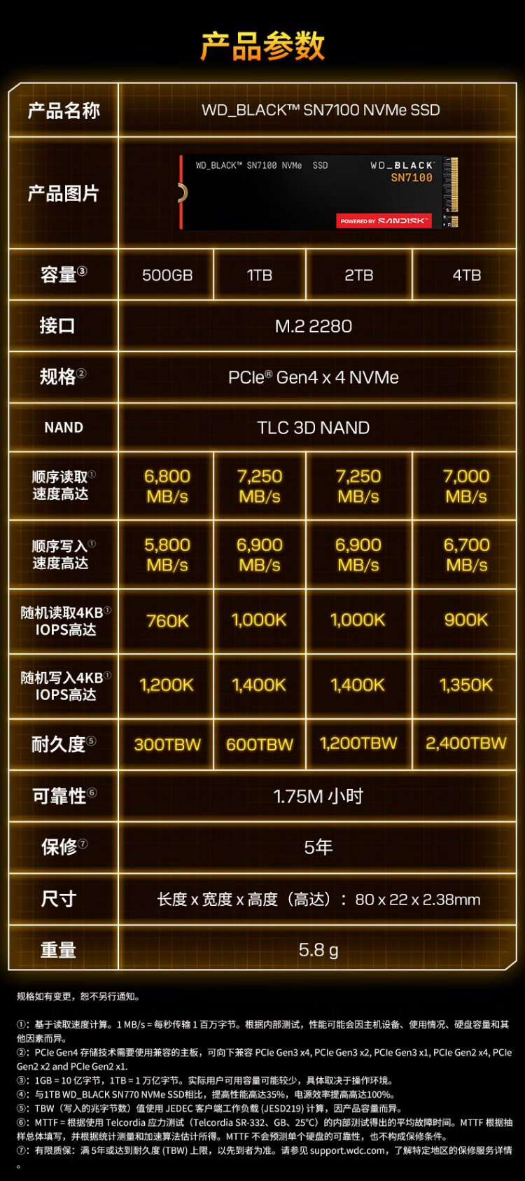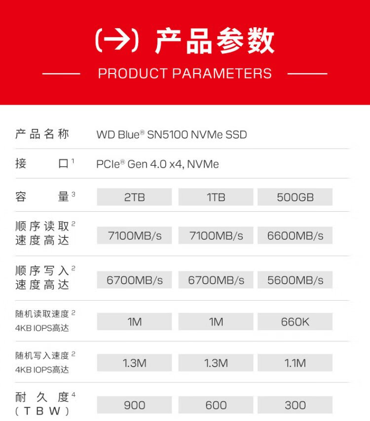 Disque SSD Western Digital (WD) Interface NVMe M.2 Accessoires informatiques AI Disque dur de jeu pour ordinateur portable Les particules originales ne sont pas fausses et ne ralentissent pas SN5100 | PCle4x4 7 100 Mo/s Grande capacité 1 To