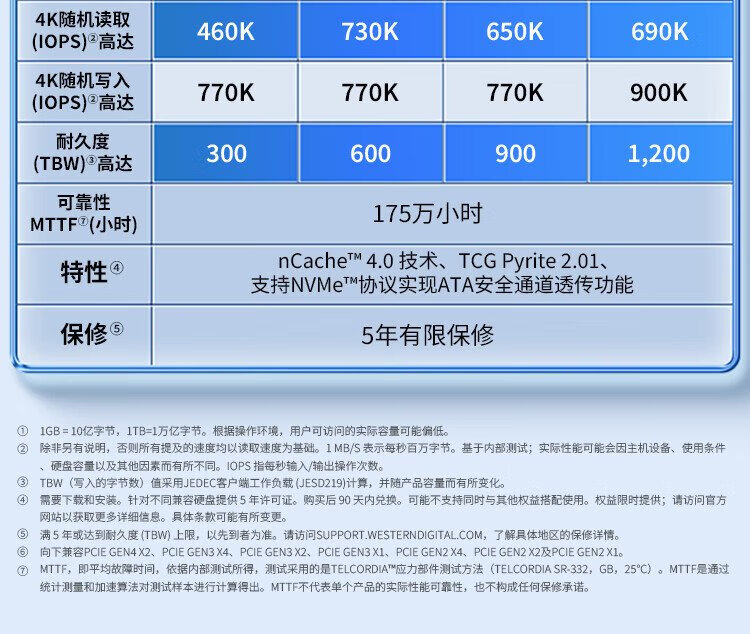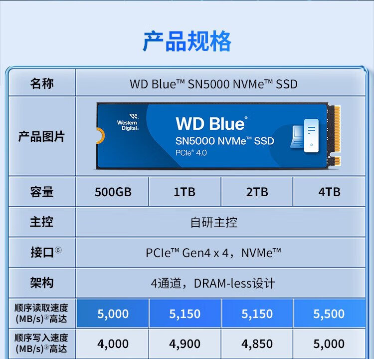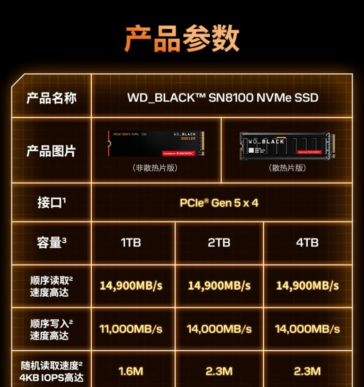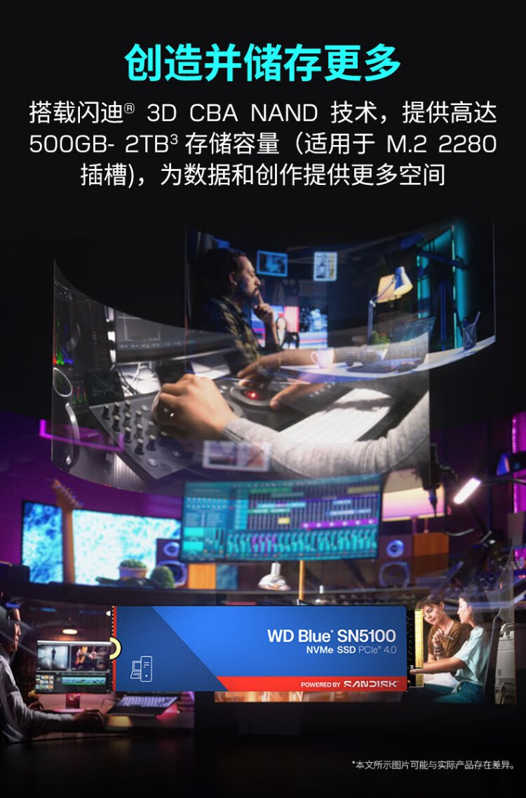 Disque SSD Western Digital (WD) Interface NVMe M.2 Accessoires informatiques AI Disque dur de jeu pour ordinateur portable Les particules originales ne sont pas fausses et ne ralentissent pas SN5100 | PCle4x4 7 100 Mo/s Très grande capacité 2 To