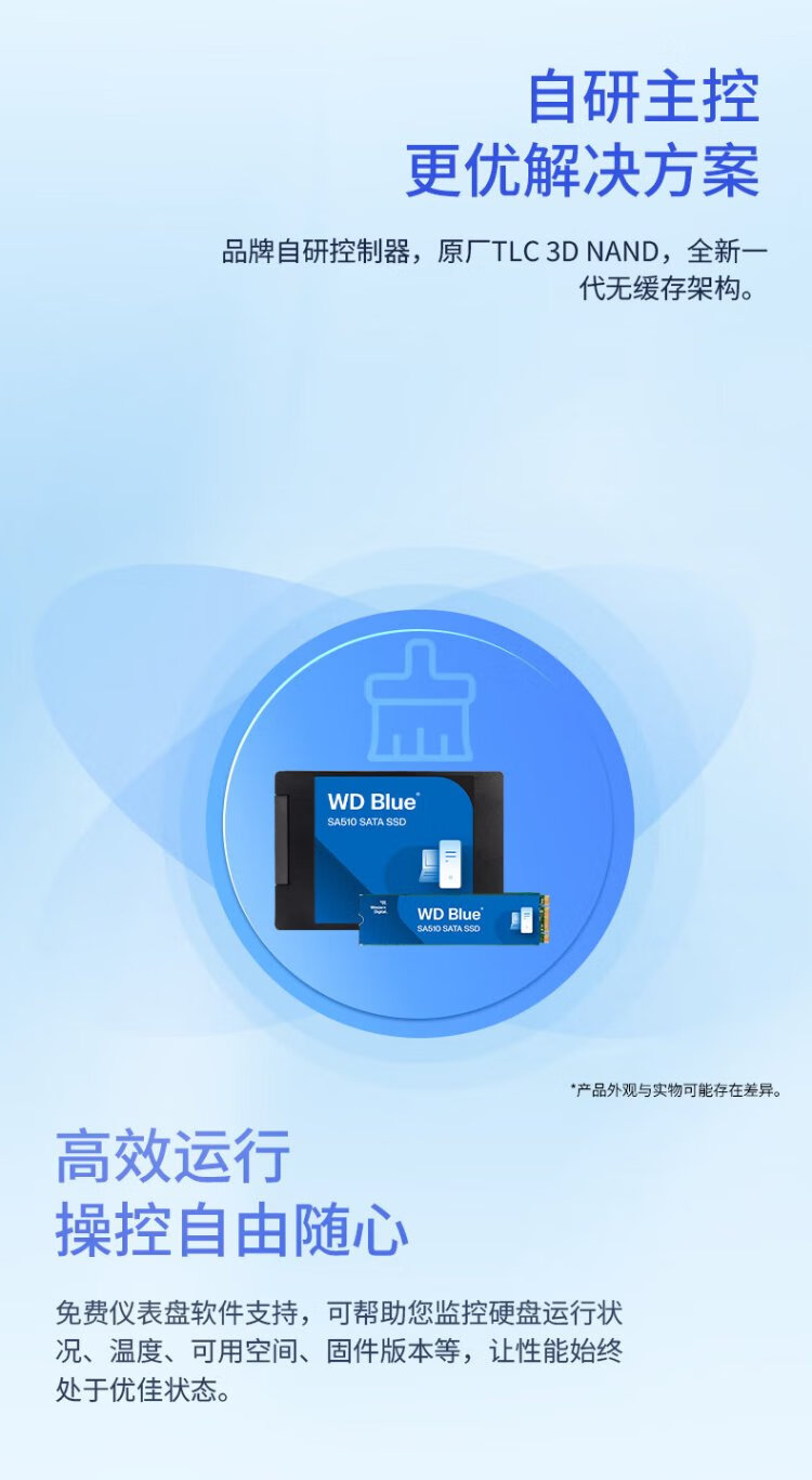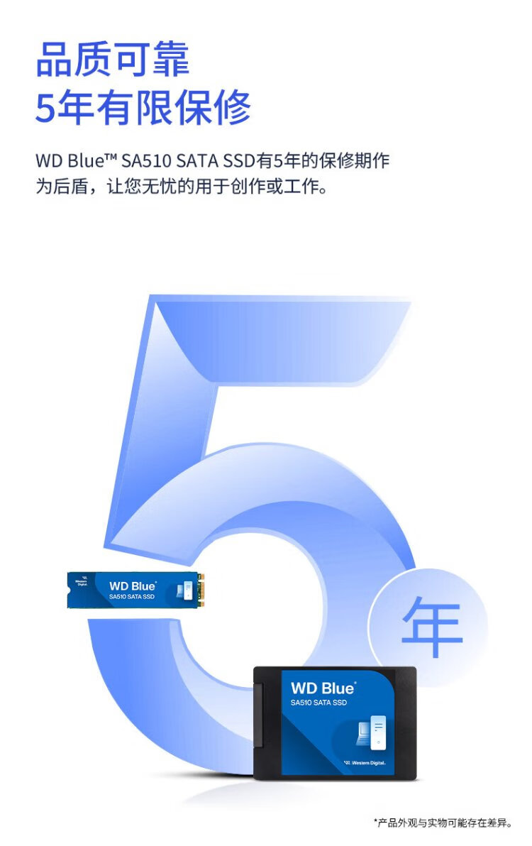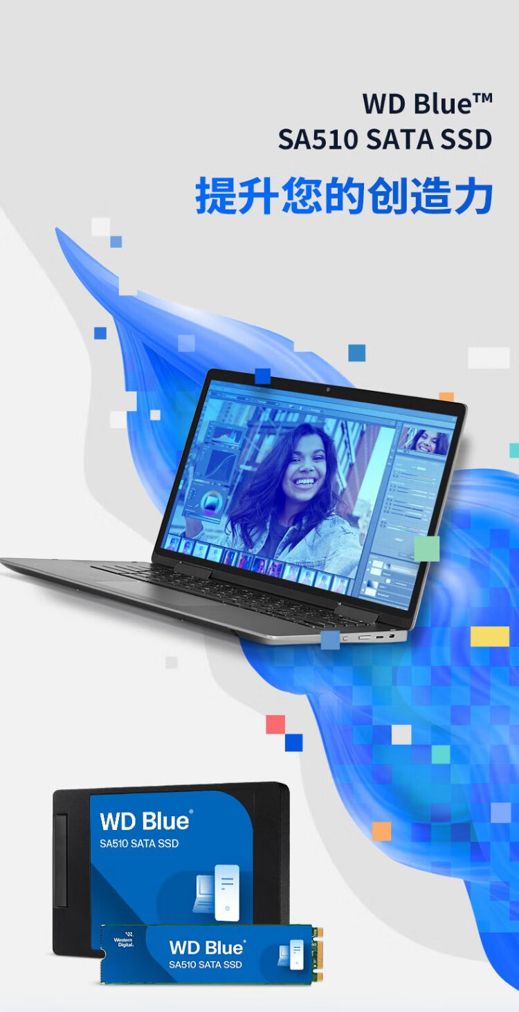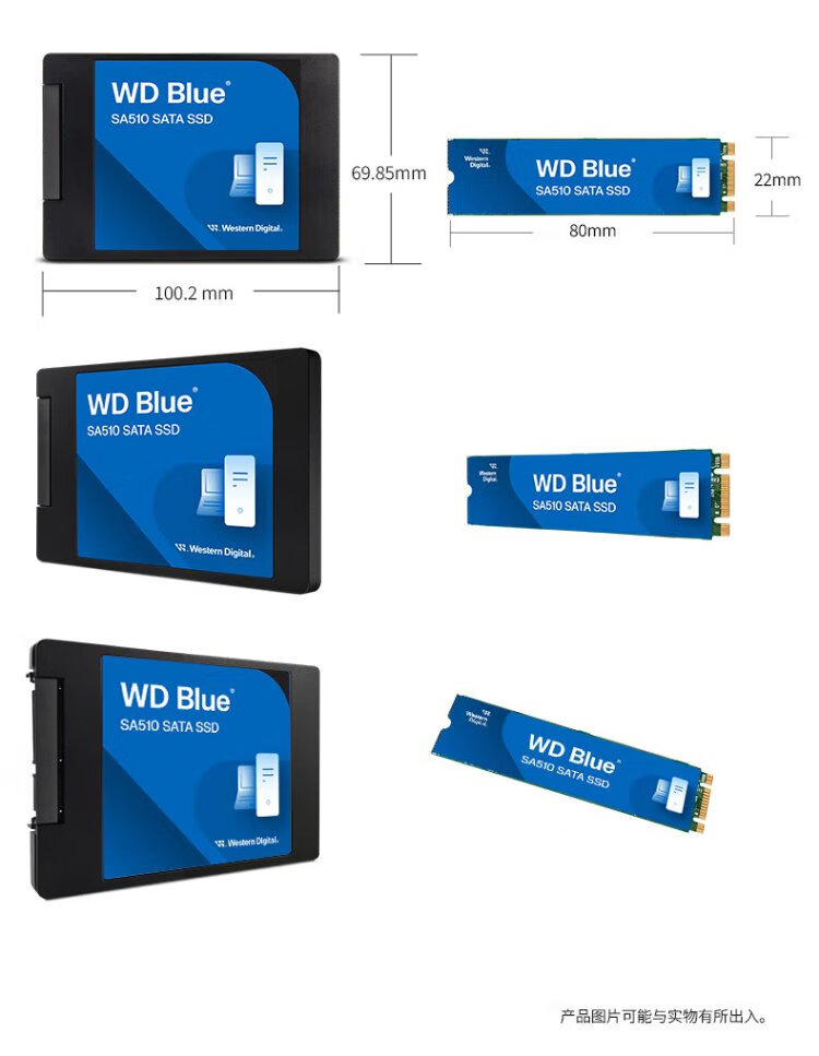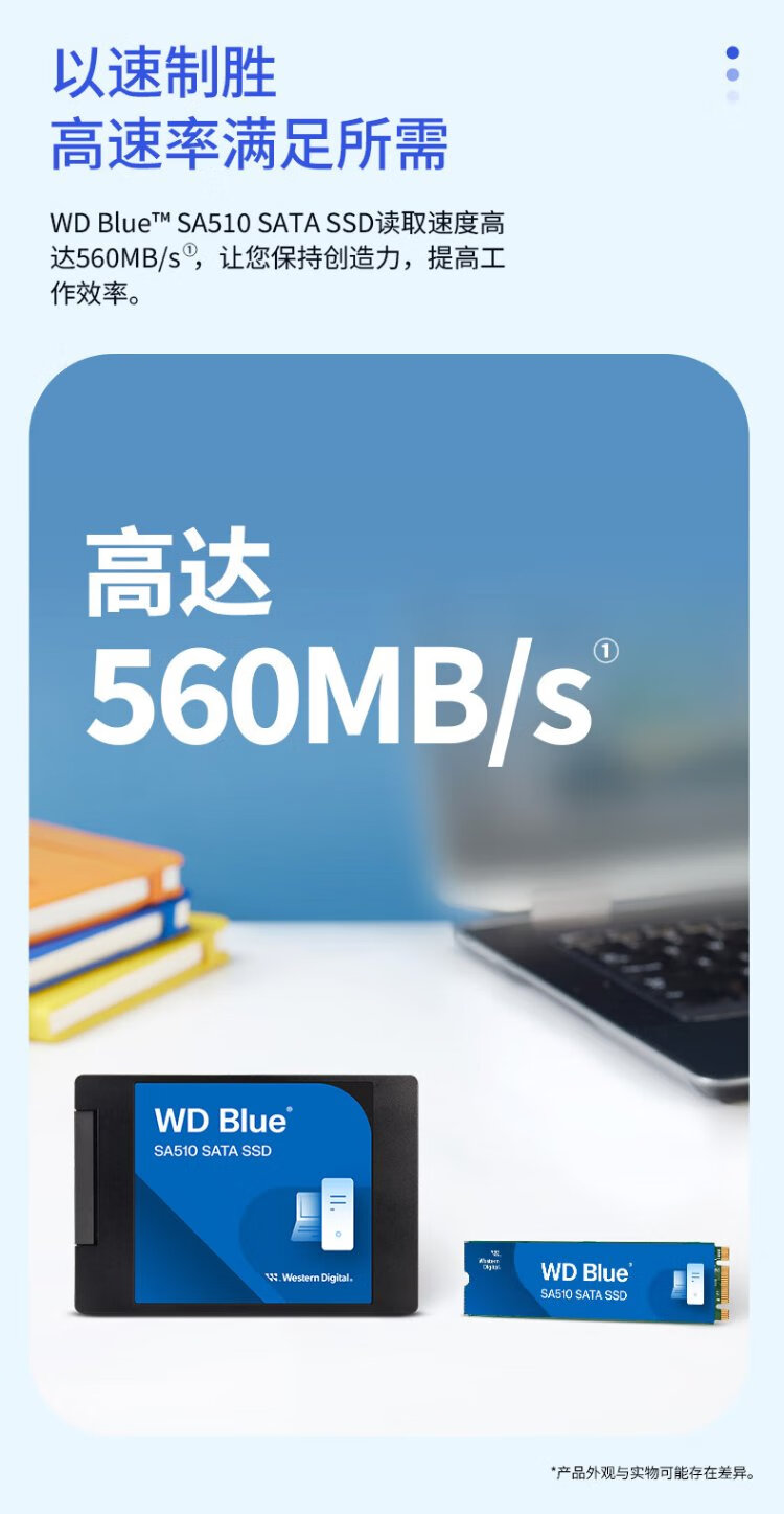 Western Digital (WD) ordinateur de bureau portable Disque SSD SA510 SATA M.2 Blue série Technologie 3D lecture et écriture haute vitesse WD Blue SATA | Modèle performant haute capacité 1 To