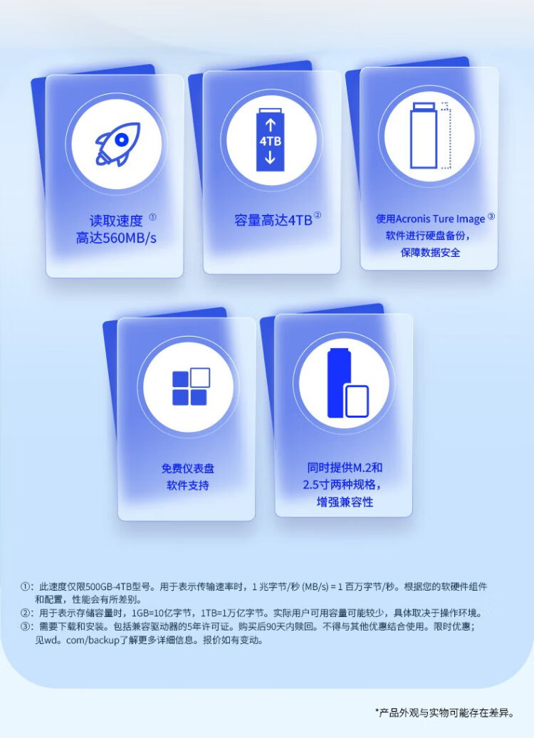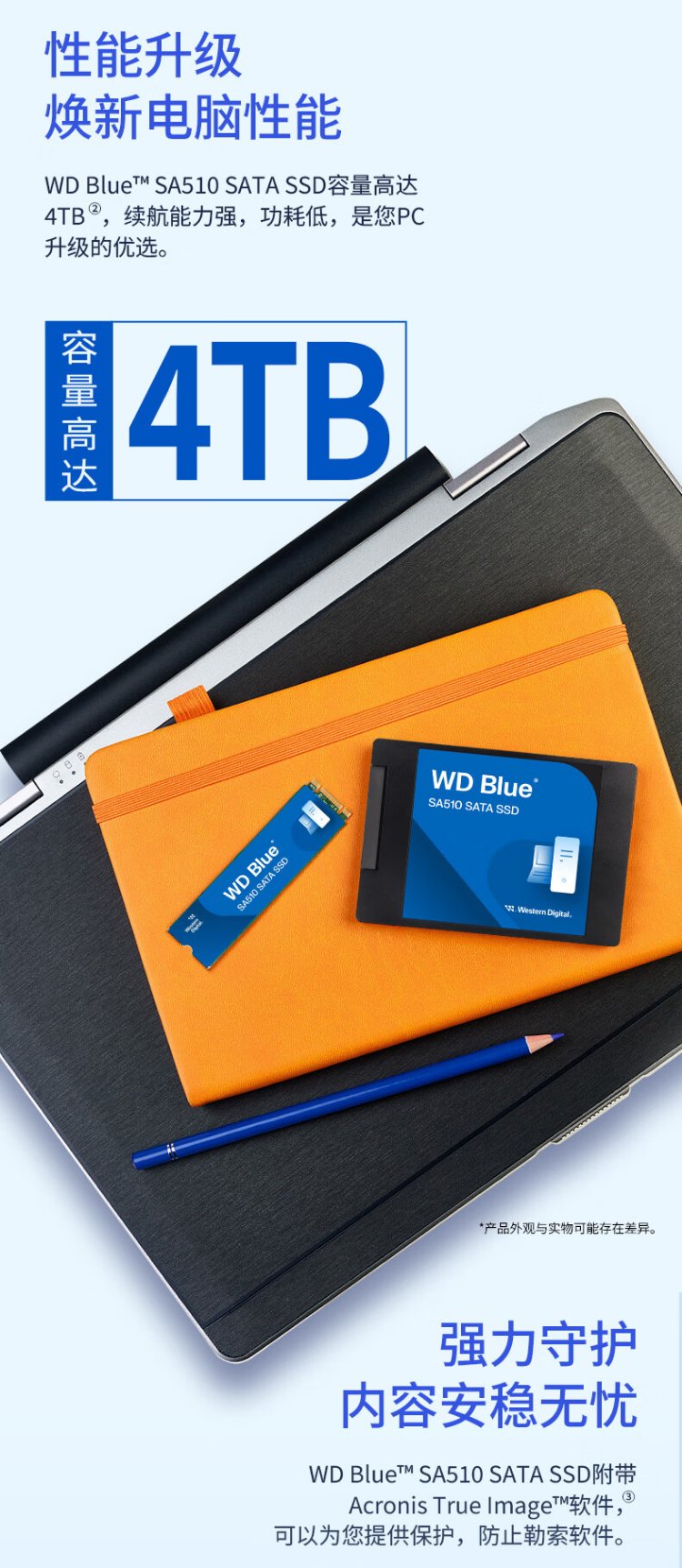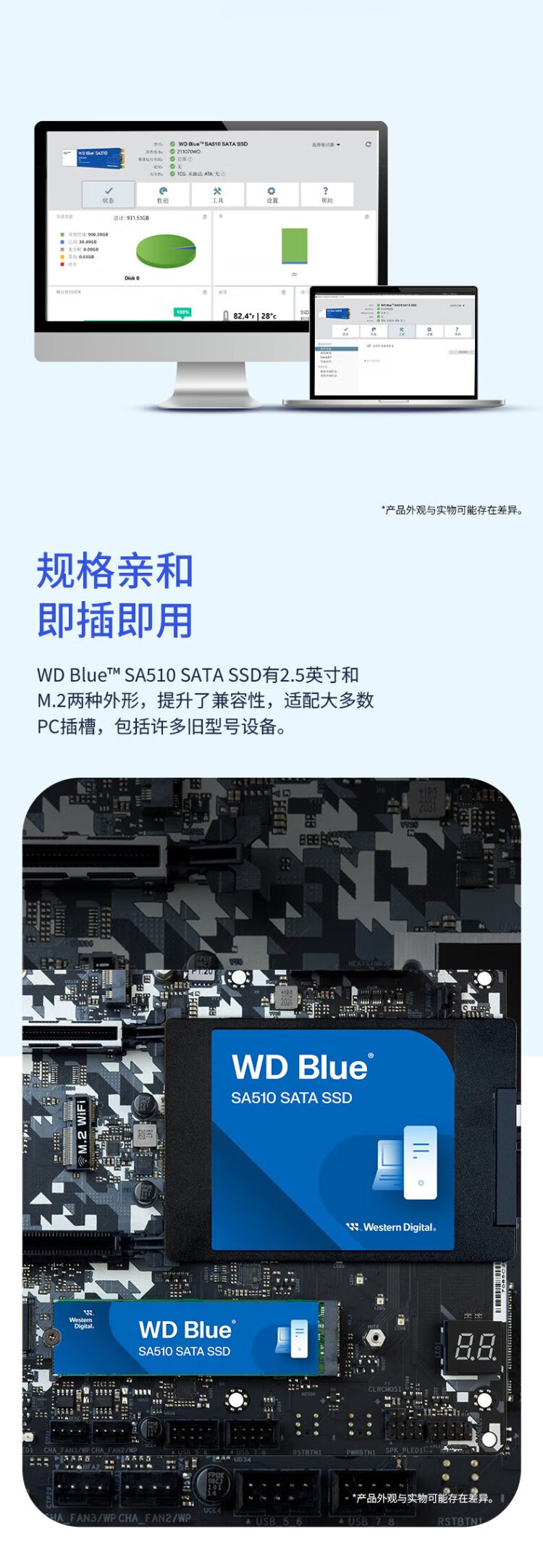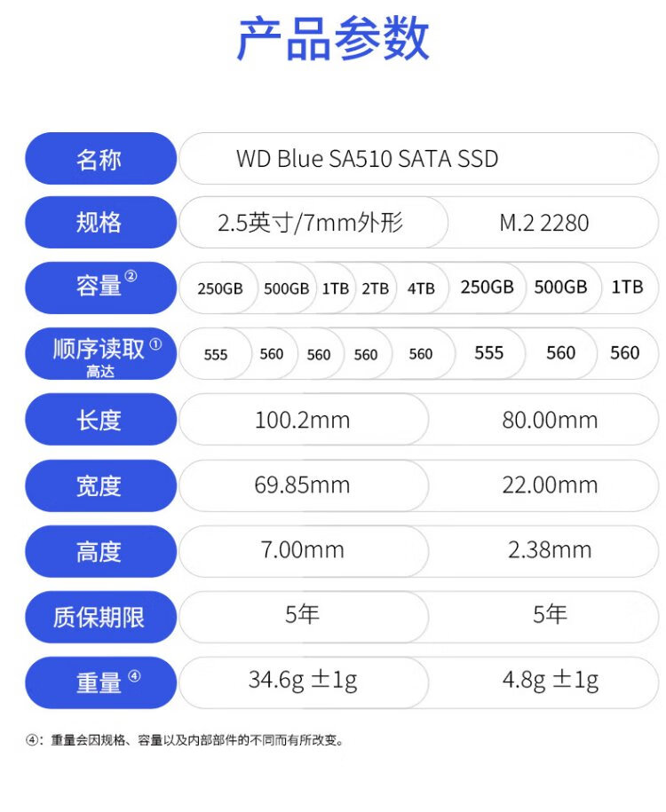 Western Digital (WD) ordinateur de bureau portable Disque SSD SA510 SATA M.2 Blue série Technologie 3D lecture et écriture haute vitesse WD Blue SATA | Modèle performant haute capacité 1 To