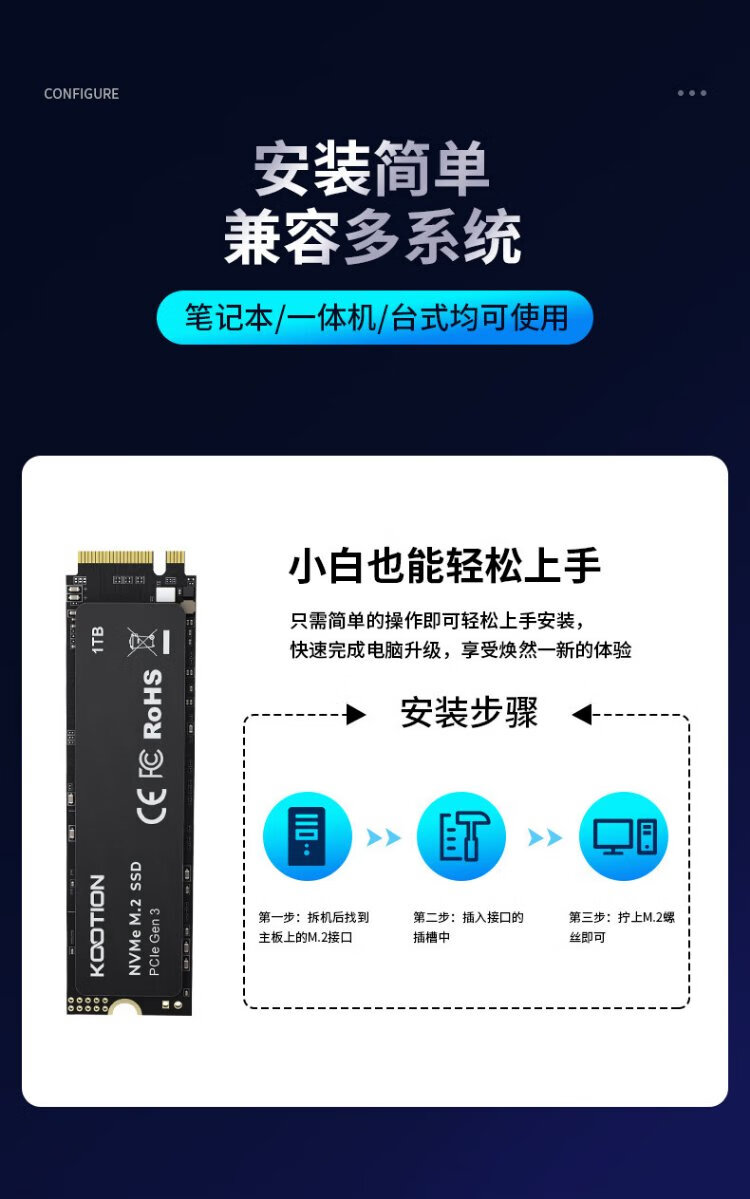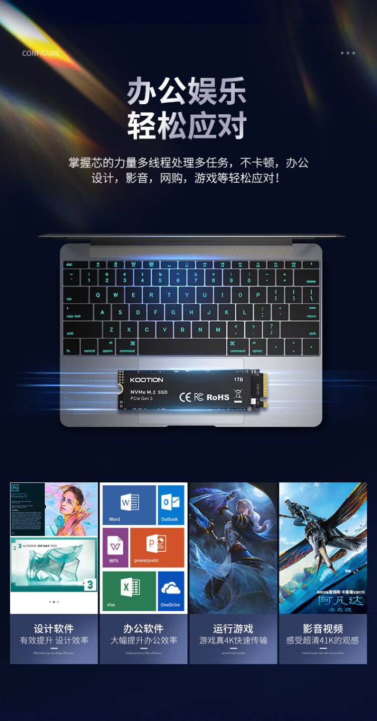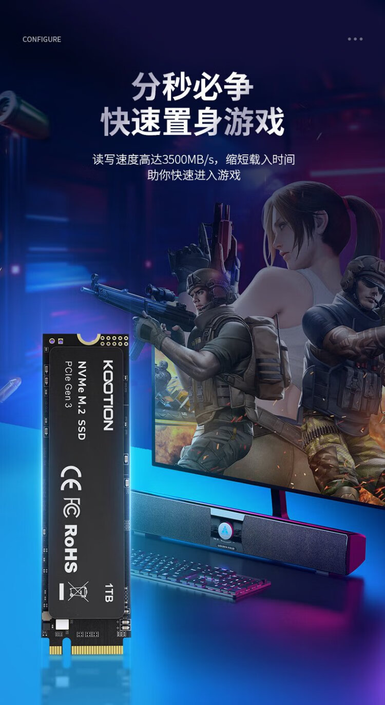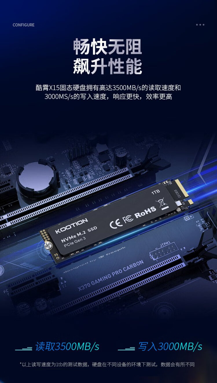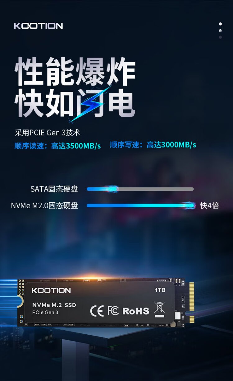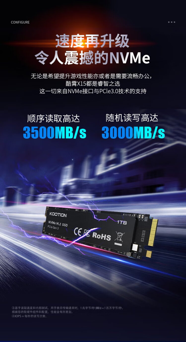 KOOTION酷霄 SSD固态硬盘m.2(NVMe协议)PCIe3.0x4 长江颗粒 内置台式笔记本华硕天选游戏本升级扩容 【512G】X15-PCle3.0 TLC颗粒